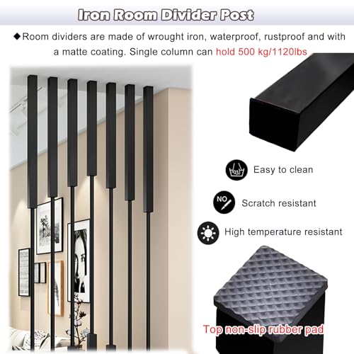 8 Pole Screen Partition Living Room, Modern Room Dividers Wall for Apartment Studio/Restaurant/Bedroom/Office Cubicle Decor, No Drilling Install, Privacy Separation Post (Color : Grey, Size : H190cm