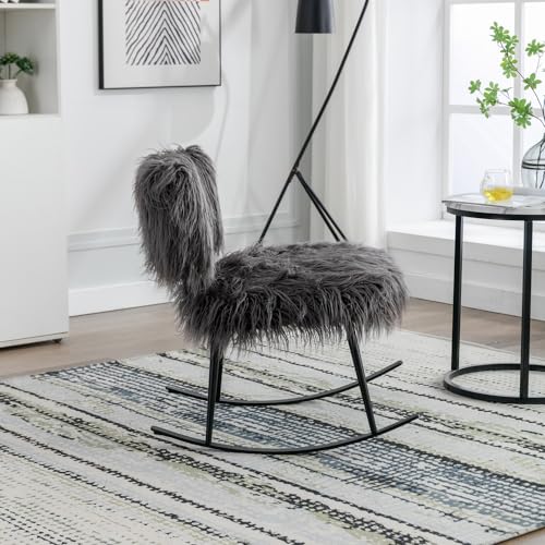 25.2" Wide Faux Fur Plush Upholstered Chair - Comfortable Bedroom Chair, Accent Chair and Living Room Bean Bag Sofa - Fluffy, Furry Stylish Chair (with footrest, White)