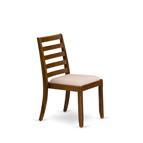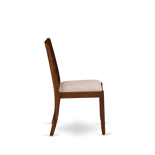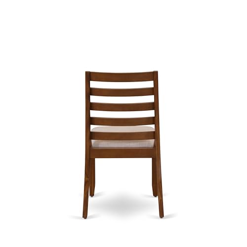 East West Furniture F2X17-0N-04 7-piece Dining Room Table Set included a Round Kitchen Table and 6 Light Tan Linen Fabric stackable Dining Chairs, Antique Walnut Finish