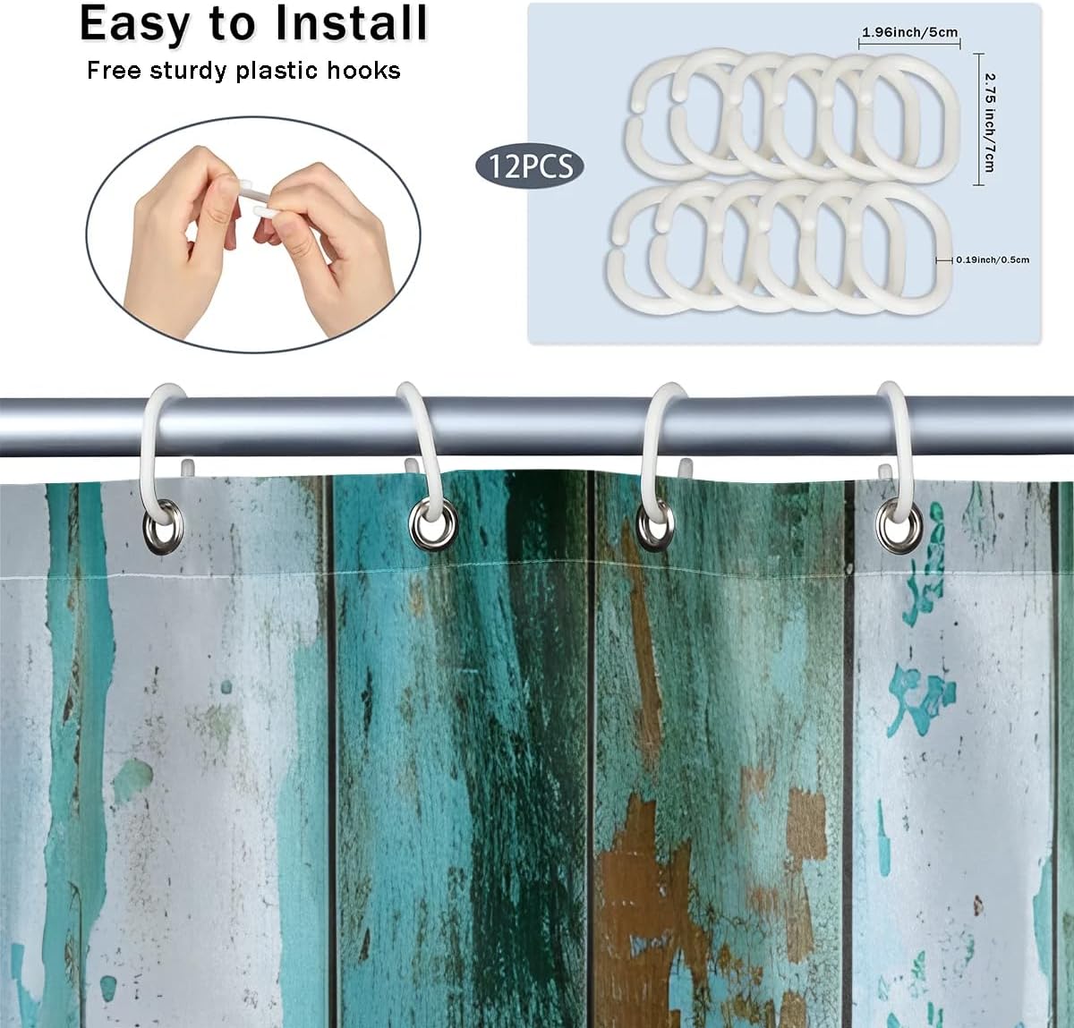 Vintage Boardwalk Seaside Shower Curtain 72x72 Inch, Waterproof Polyester Machine Washable Bathroom Curtain, with 12 Shower Curtains Hooks for Tub Cubicle Fabric Curtains Home Decoration