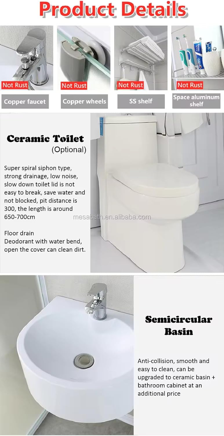 Luxury Multi-Function Prefab Bathroom Unit - Ready Toilet Shower Cubicle Set, High-End Design for Convenience and Style, Ideal for Modern Living Spaces, Easy Installation