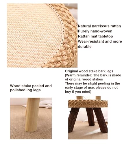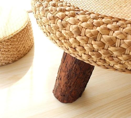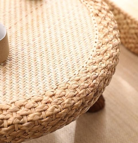 Rattan Round Coffee Table,Small End Table Low Table for Small Spaces,Tatami Table Vintage Tea Table for Living Room Balcony Home Decor,B
