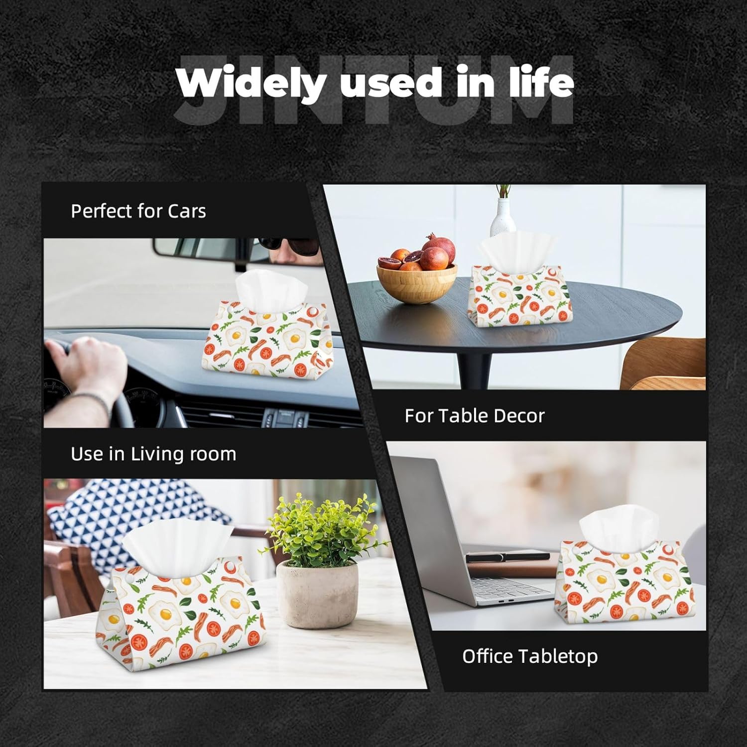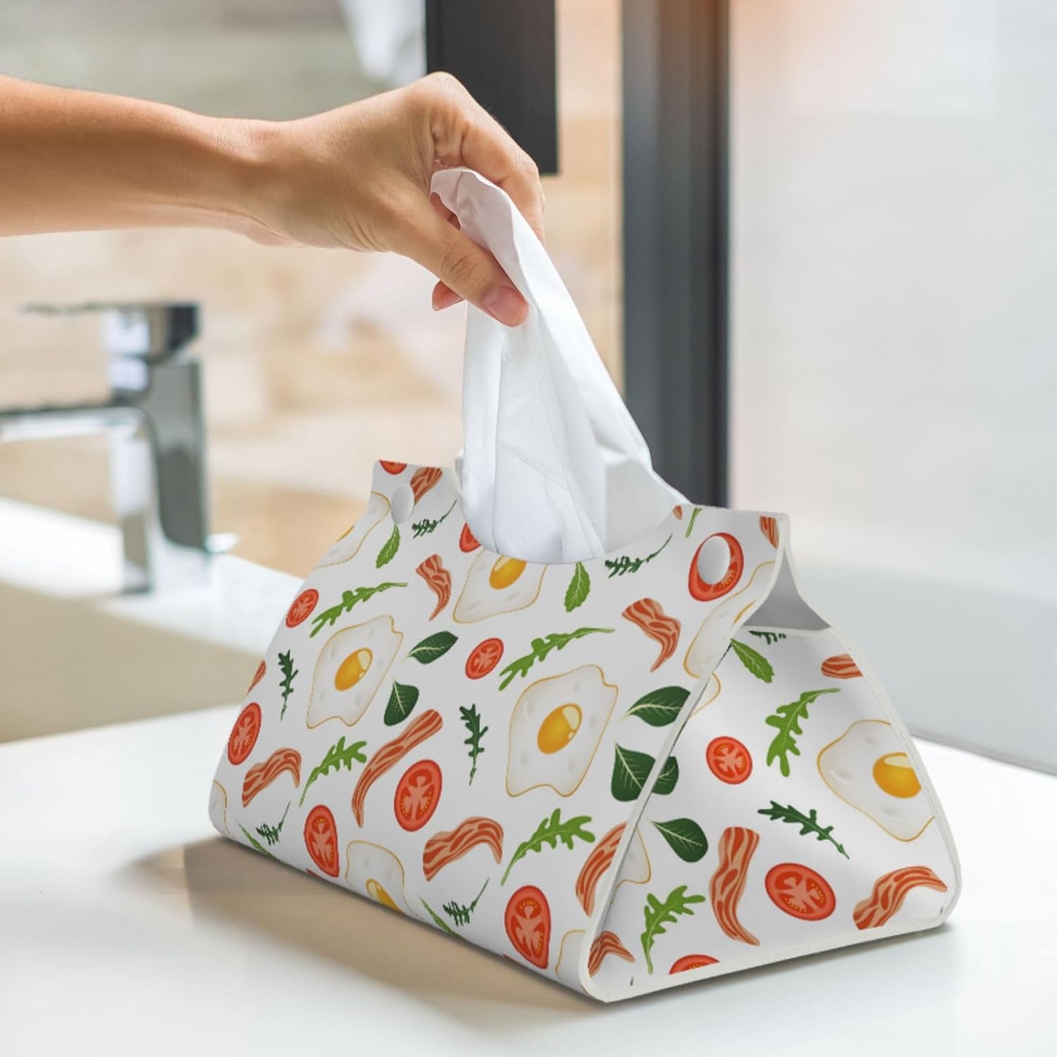 Leather Tissue Box Cover - Bacon Vegetable Hobo Eggs Long PVC Tissue Box Holder for Bedside Tables, Dining Desks, Tables, Modern Tissue Holder Cover for Bedroom, Office, Living Room Decor