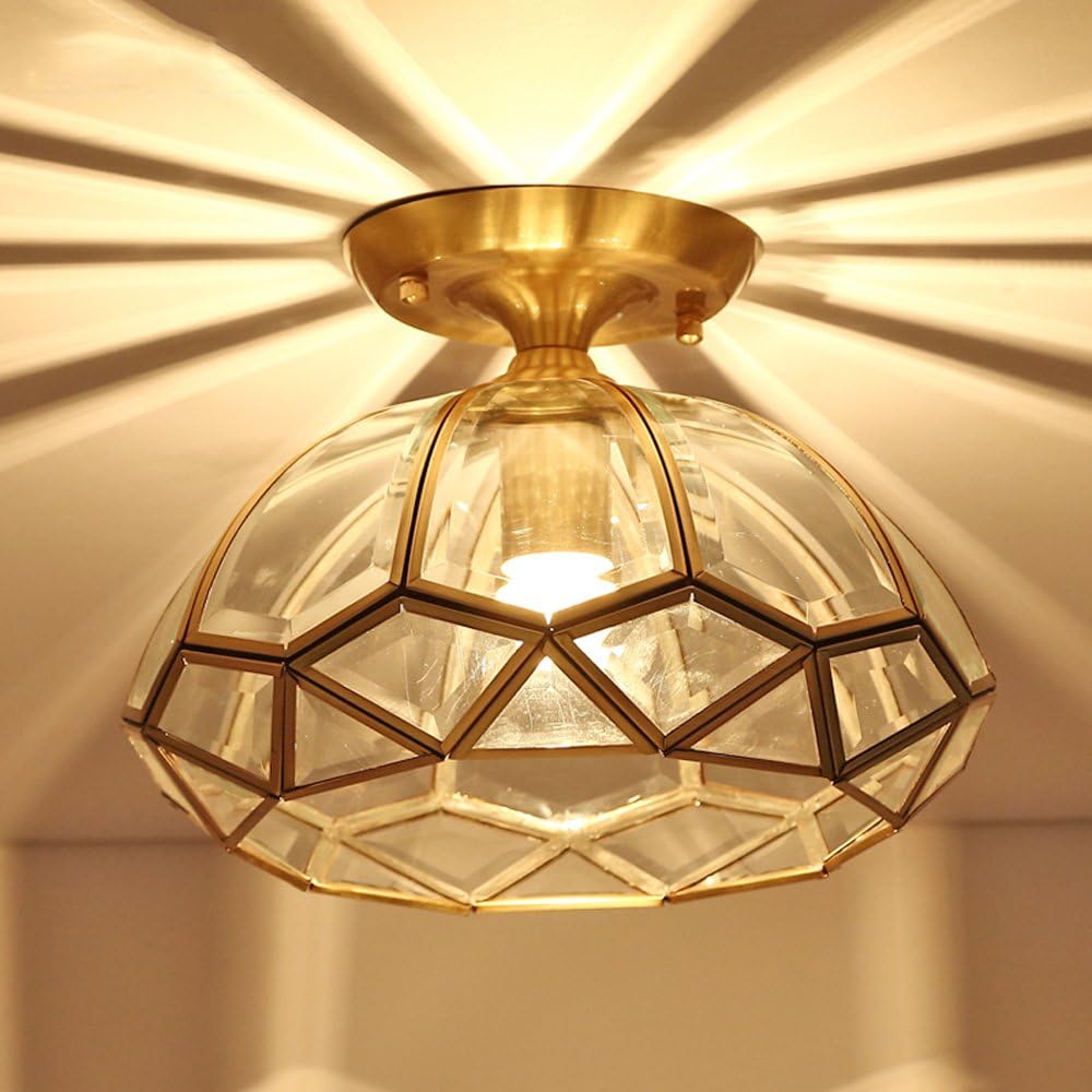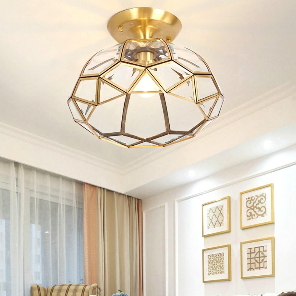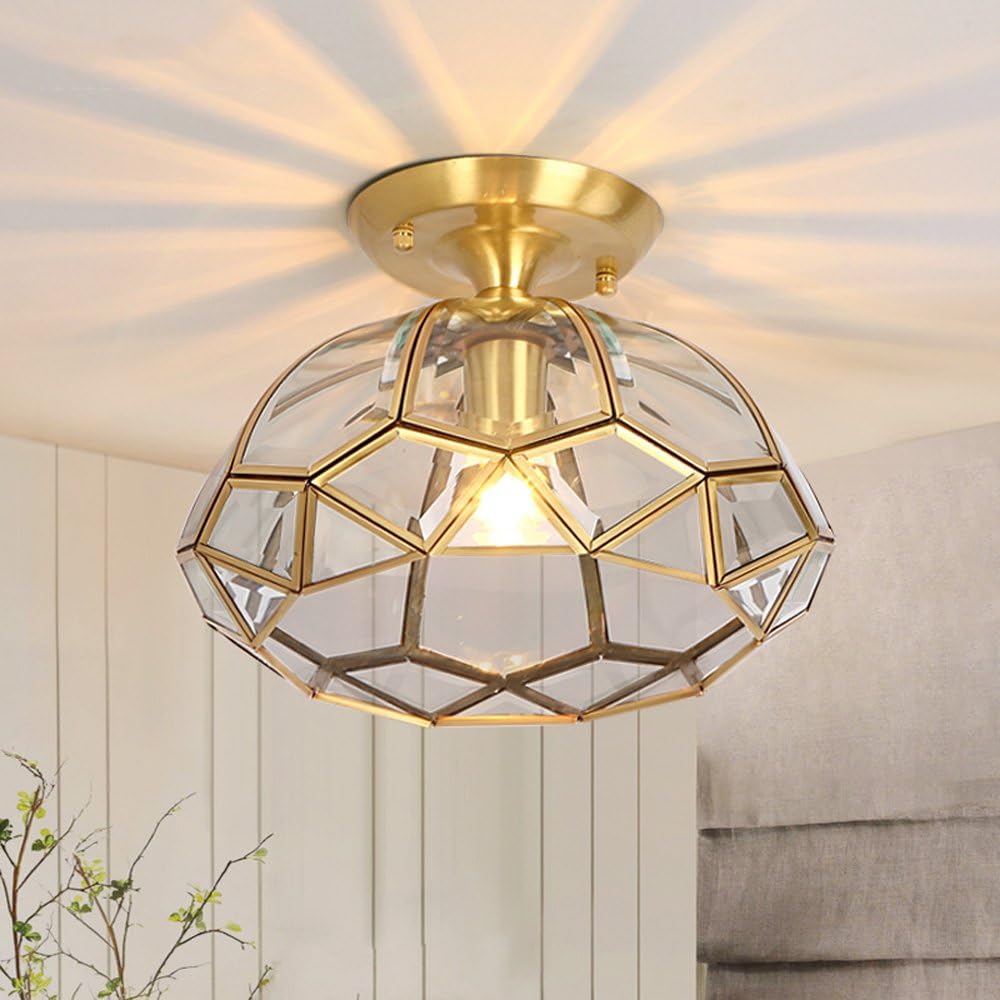 Modern Copper Ceiling Lamp Simple Copper Country Style Glass Shade Ceiling Light for Study Cubicle Balcony Aisle Porch Copper Lamp Ceiling Lighting Fixture Durable