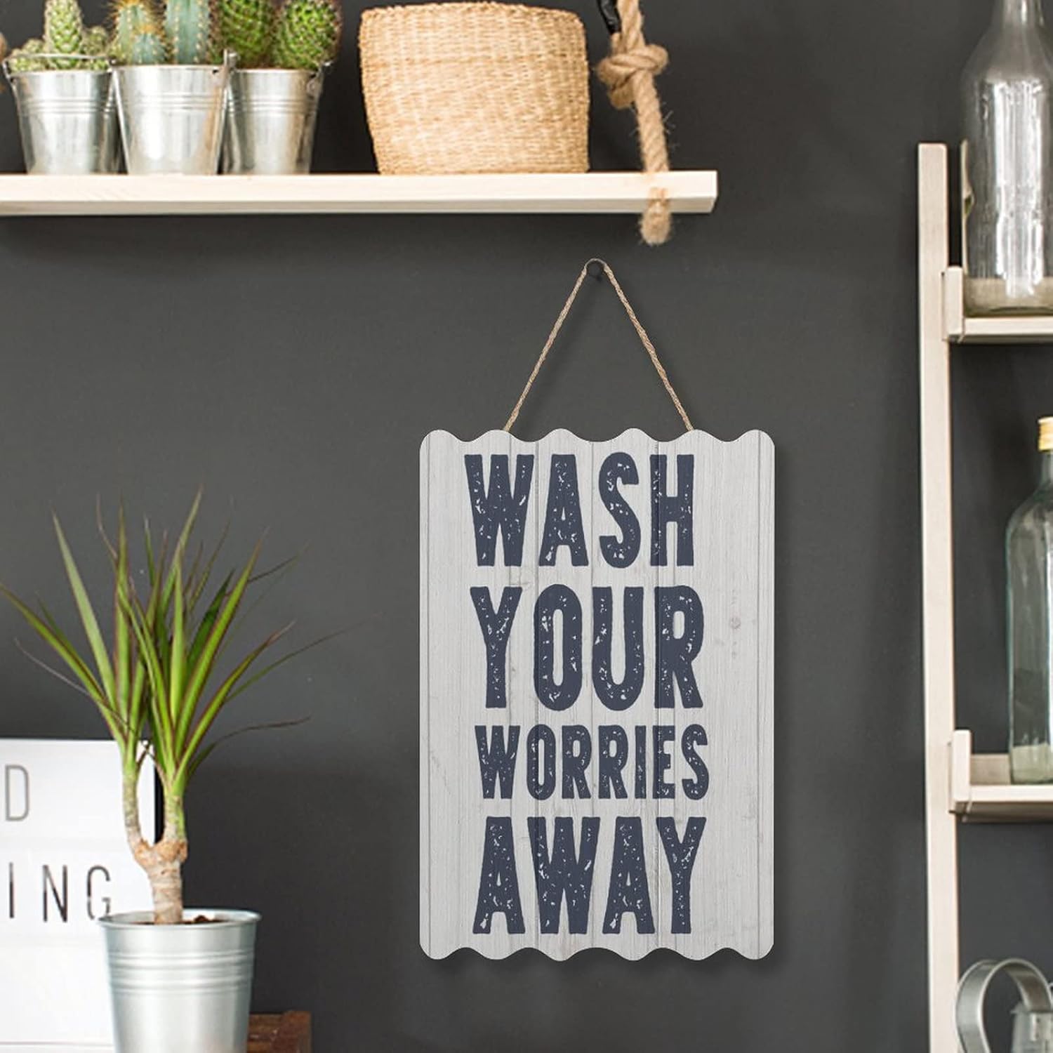 Vertical Rustic Wooden House Signs Wash Your Worries Ayay 8x12 Inch Funny Coffee Bar Sign Kitchen Pantry Office Cubicle Decor Modern Farmhouse Hanging Signs Wood Wall Art Home Decorations