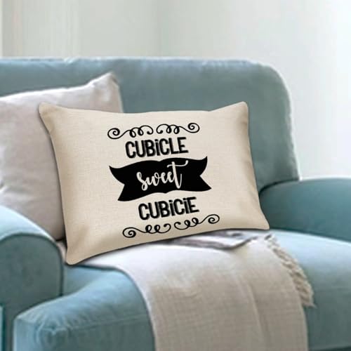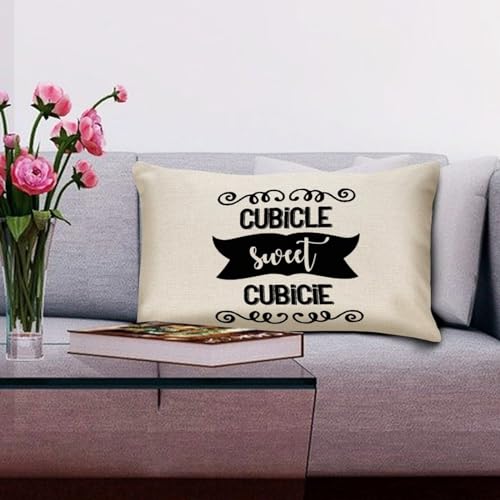 Cubicle Sweet Cubicle, Office, Work, Boss Pillow Covers Inspirational Saying Cushion Cover 12x18in Pillow Case Cotton Accent Toss Pillowcase Rustic Decor for Sofa Living Room Bedroom