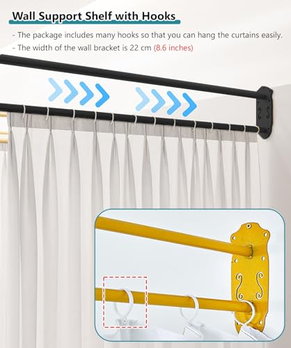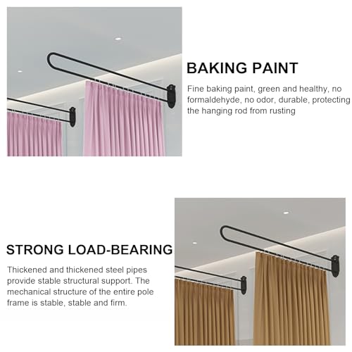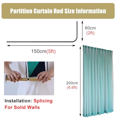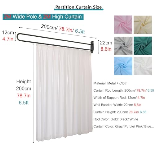 Room Divider Black Modern Fitting Room Divider, Wall Mount Metal Support Rod & Curtain, Heavy Duty Decor Privacy Cubicle Drapes for Bedroom Living Dining (Size : 200cm(6.6ft))