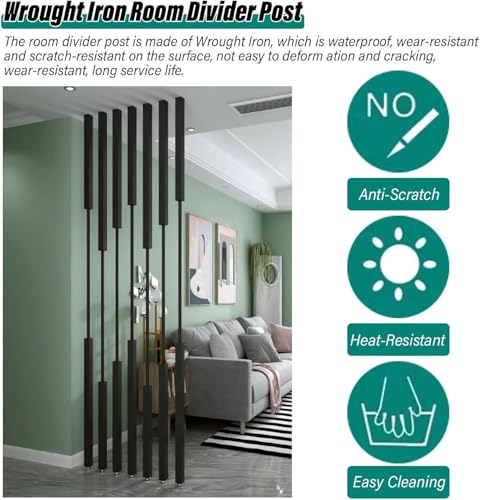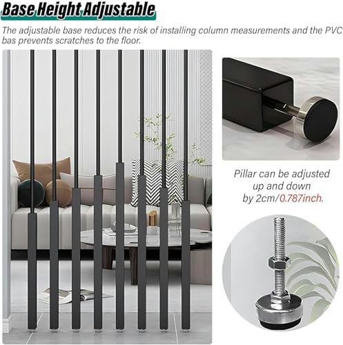 Room Screens Partition Column, Black Standing Wall Partition Column, Modern Room Separation Decor, Room Divider Screens Post/Room Separation with Height Adjustable Base