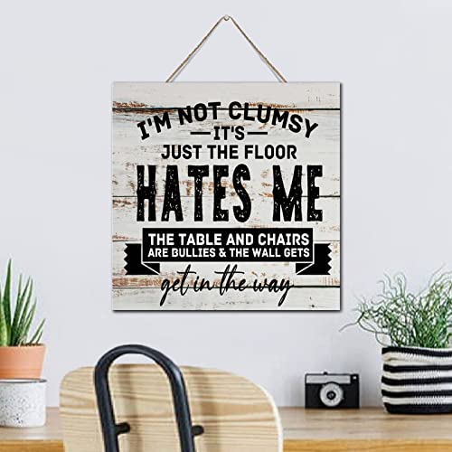 Country Wooden Signs with Quotes I'm Not Clumsy It's Just The Floor Hates Me 12x12 in Funny Coffee Bar Sign Kitchen Office Cubicle Decor Modern Farmhouse Hanging Signs Wood Wall Art Home Decorations
