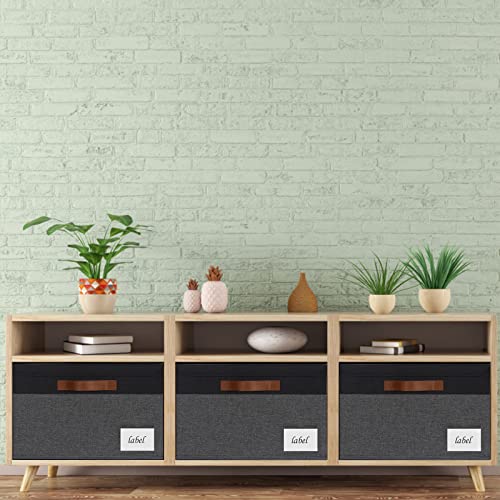 Large Storage Bins with Lids, Foldable Fabric Storage Baskets with Lids, Sturdy Storage Boxes with Labels and 3 PU Handles for Closet Home Bedroom Office (26L, 3 Packs, Grey&White)