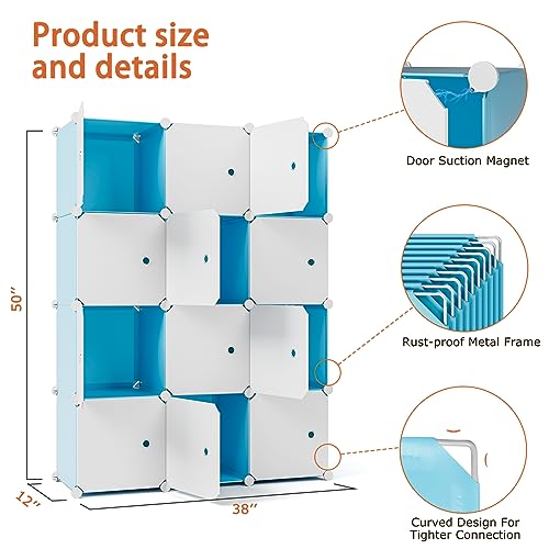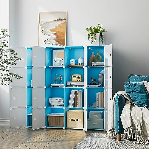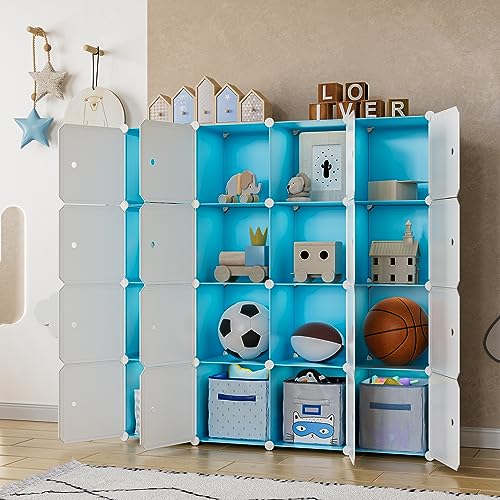 Closet Organizer, 16-Cube Storage with Doors, Closet Organizers and Storage, Portable Closet Storage System, Clothes Organizer Storage Shelf for Bedroom, Wardrobe, Blue