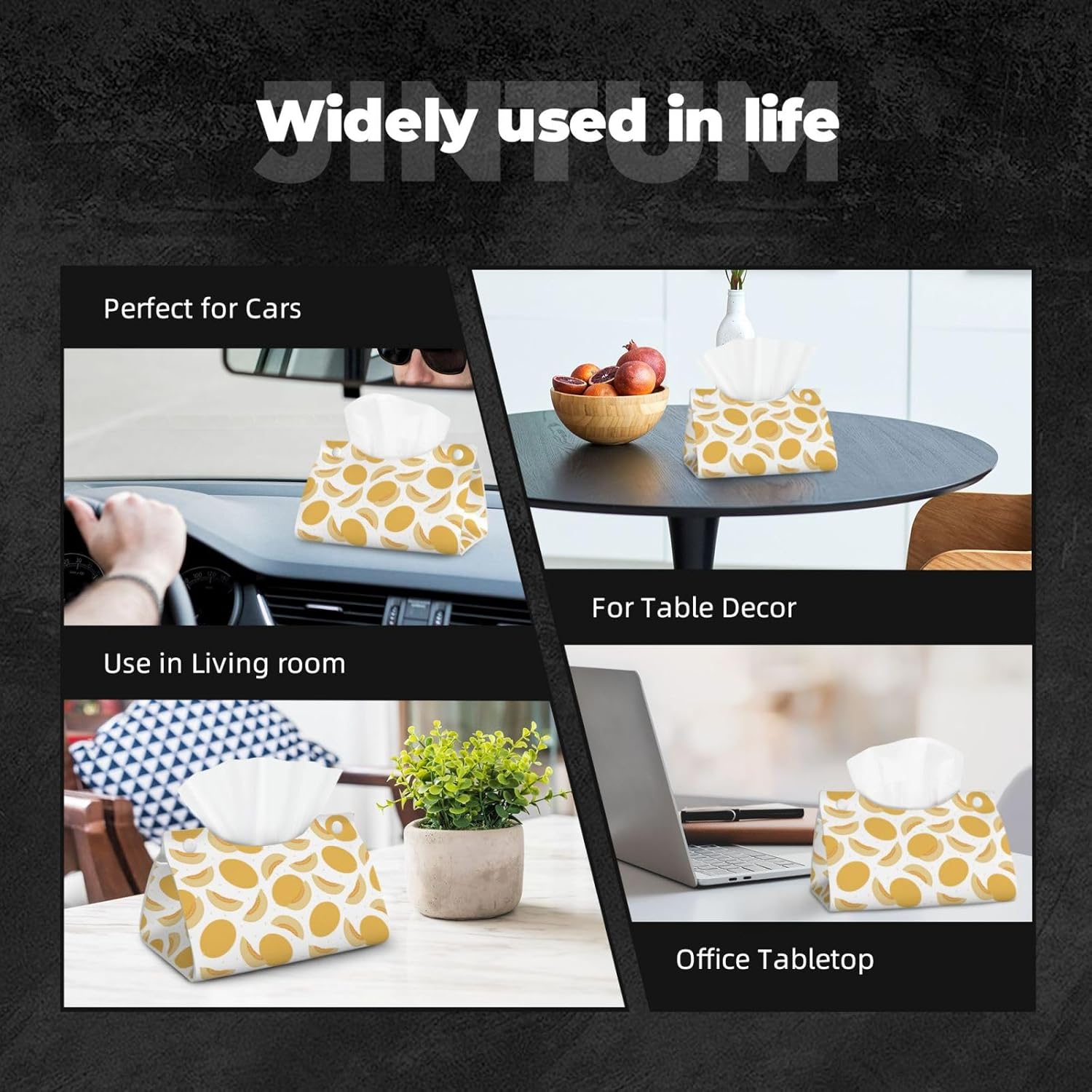 Leather Tissue Box Cover - Cute Cantaloupe Tangerine Long PVC Tissue Box Holder for Bedside Tables, Dining Desks, Tables, Modern Tissue Holder Cover for Bedroom, Office, Living Room Decor