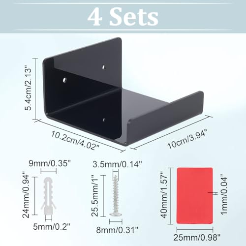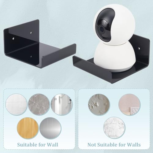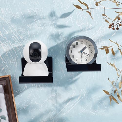 PandaHall 4pcs Acrylic Floating Shelves Wall Shelves Shelf Display Ledges Adhesive Hanging Shelves White Display Stand for Smart Speaker Security Cameras with Cable Clips, 2 Type Installation