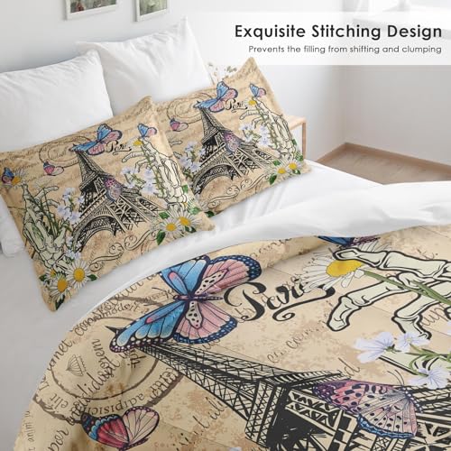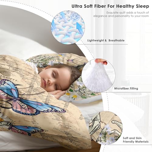 Pink Butterfly King Size Comforter Set,Kids Princess Butterfly Decor All Season Bedding Set,Teens Watercolor Art Comforter,Butterfly Dress Decor Quilt Set Bedroom Collection 3Pcs
