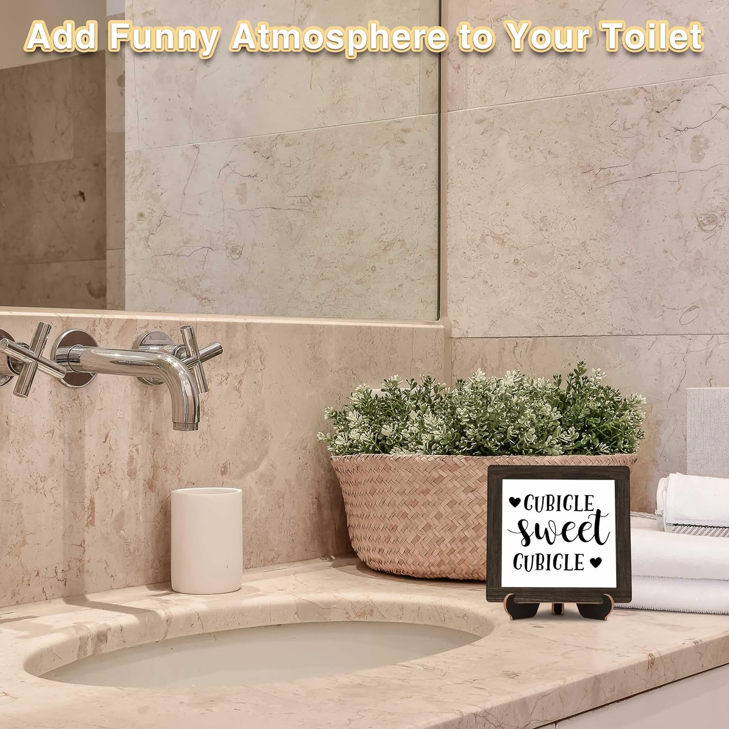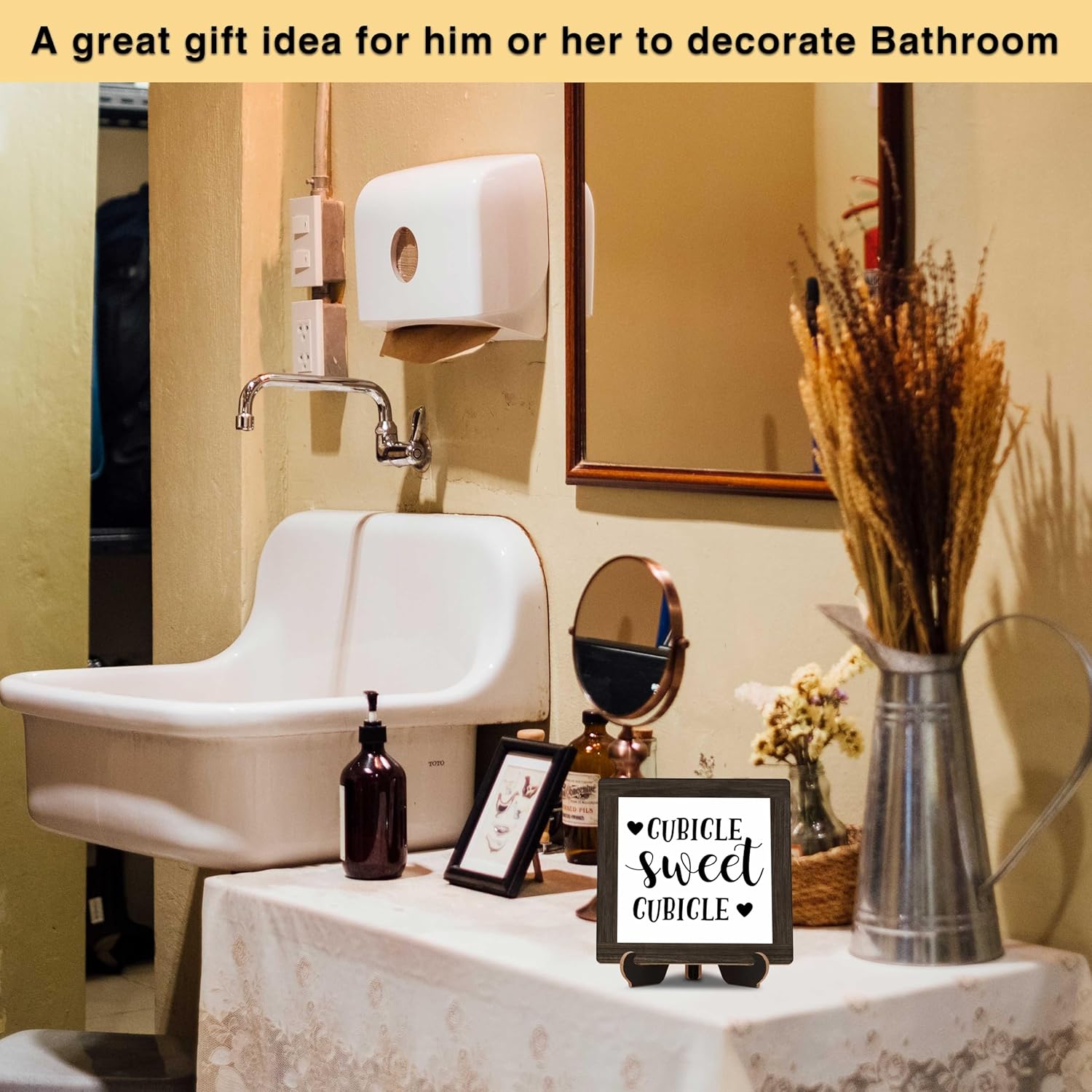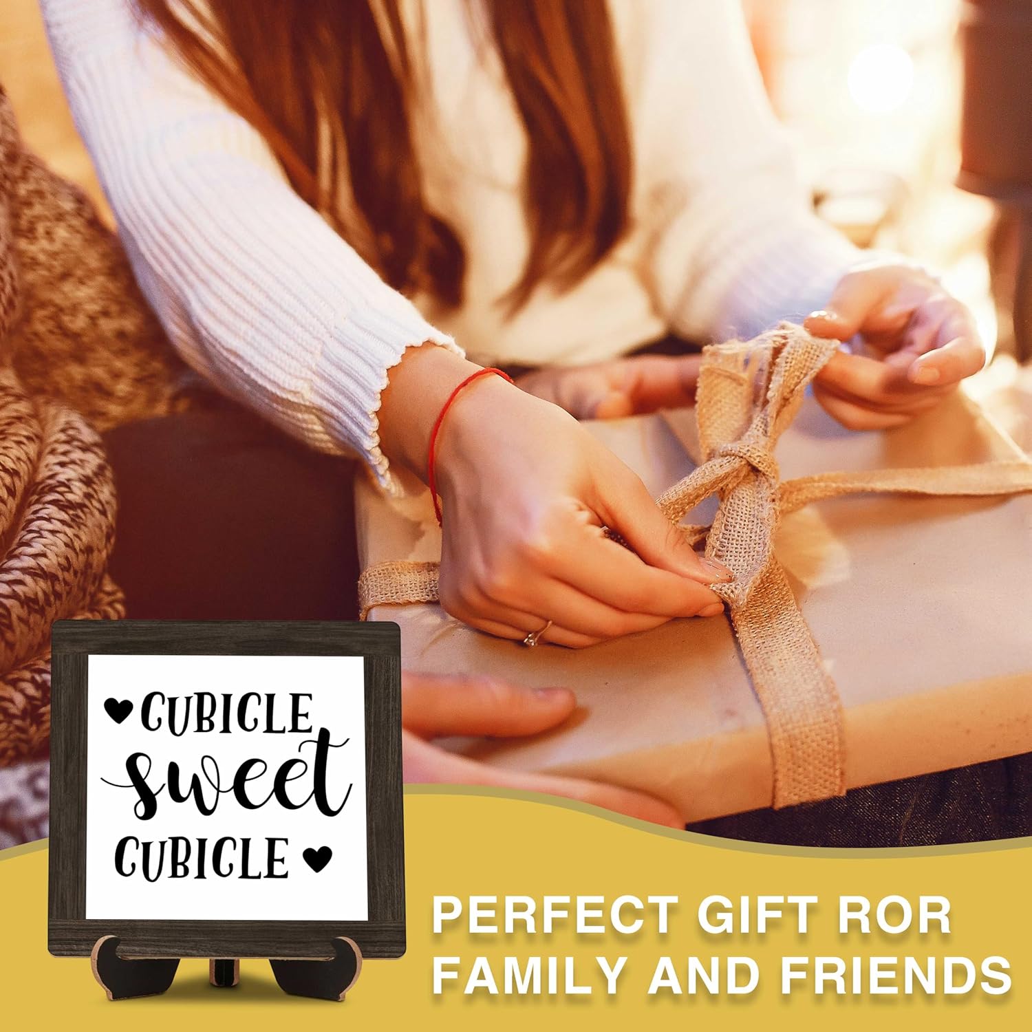 Farmhouse Office Desk Decor, Cubicle Sweet Cubicle Wood Sign, 5x5 Inches Inspirational Office Table Sign, Birthday Christmas Office Gifts for Boss Leader Coworkers -B22