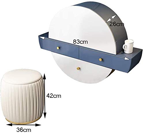 Makeup Vanity Table for Women Girls, Nordic Modern Light Luxury Wall-Mounted Dressing Table Cubicle Round Storage Cabinet Integrated with Mirror Stool(Color:Style 1), GAOXYUAN2025631