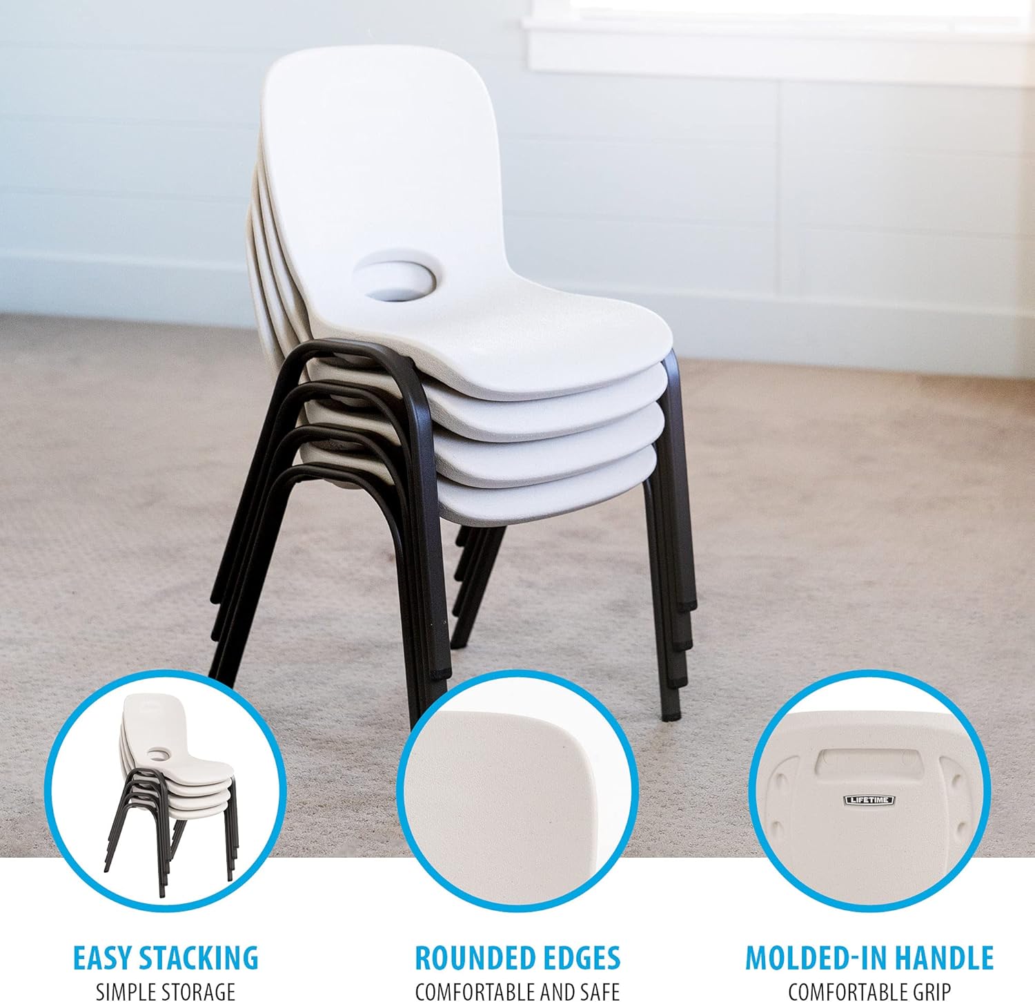 Lifetime 80383 Kids Stacking Chair, Almond & 80425 Kids Folding Table, Almond, 36"