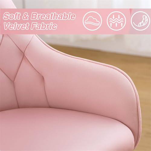 Velvet Office Chair Cute Vanity Chair with Wheels and Arms for Bedroom Upholstered Task Chair for Home Office Dark Blue
