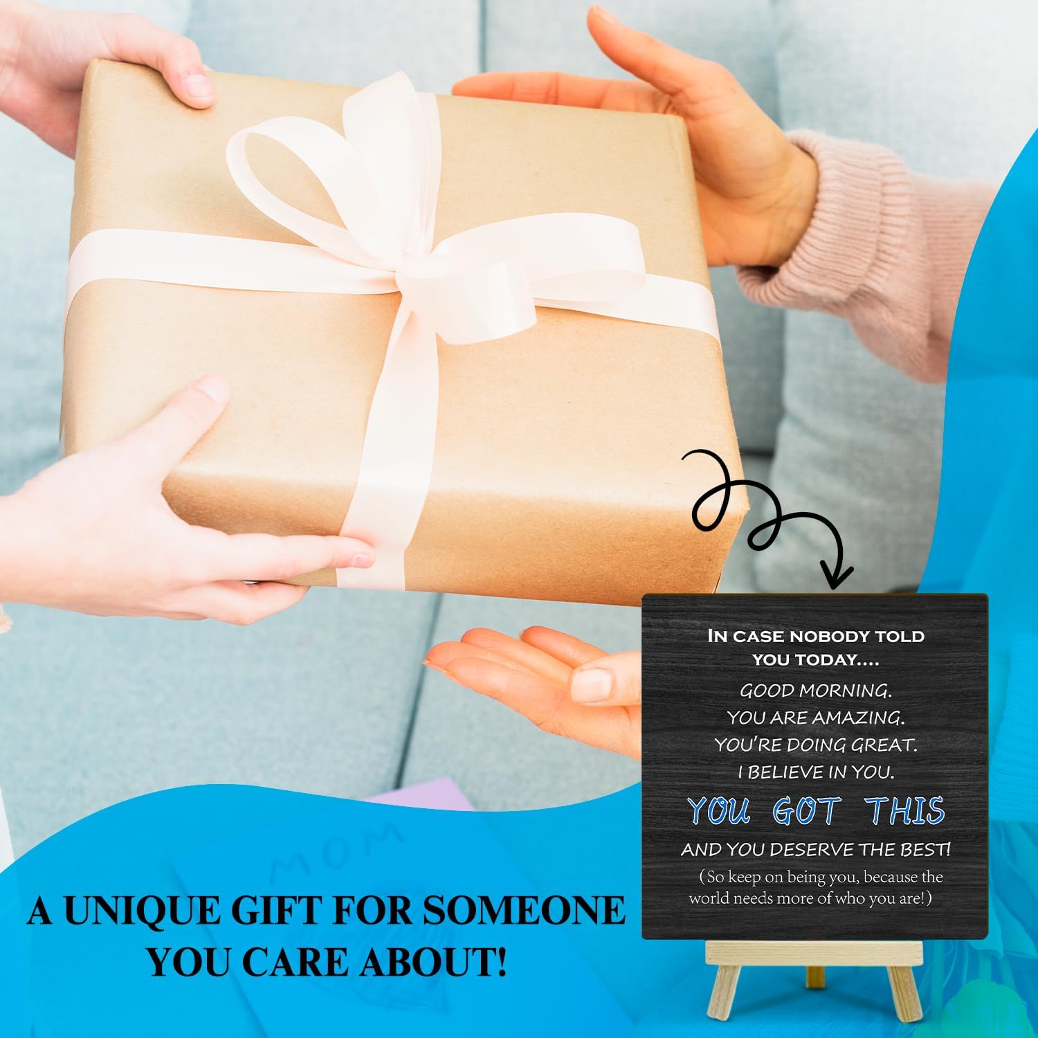 Thank You Gifts Appreciation Gifts Inspirational Quotes Desk Decor Gifts for Women Friends, Positive Plaque With Wooden Stand Desk Decorations for Home Living Room Bedroom Shelf Tabletop(56)