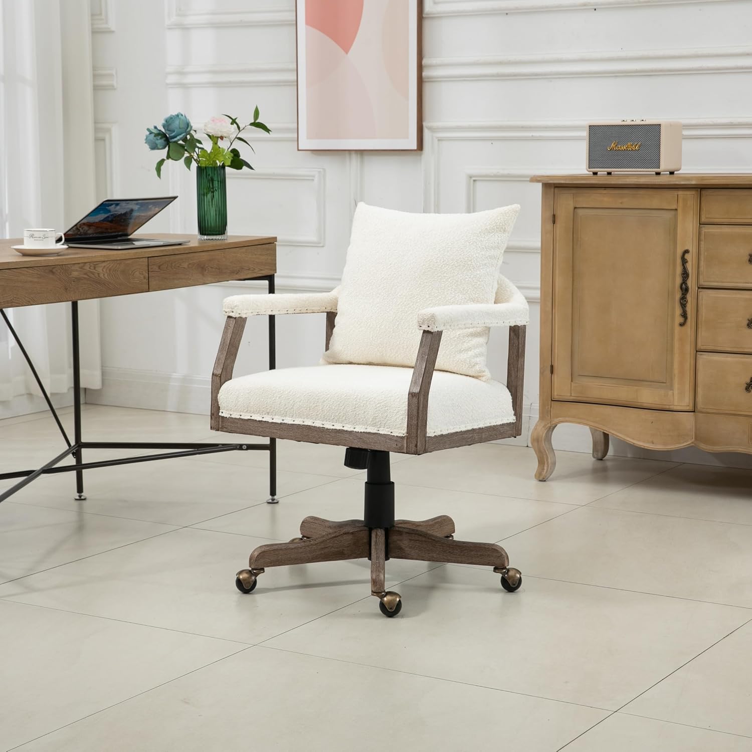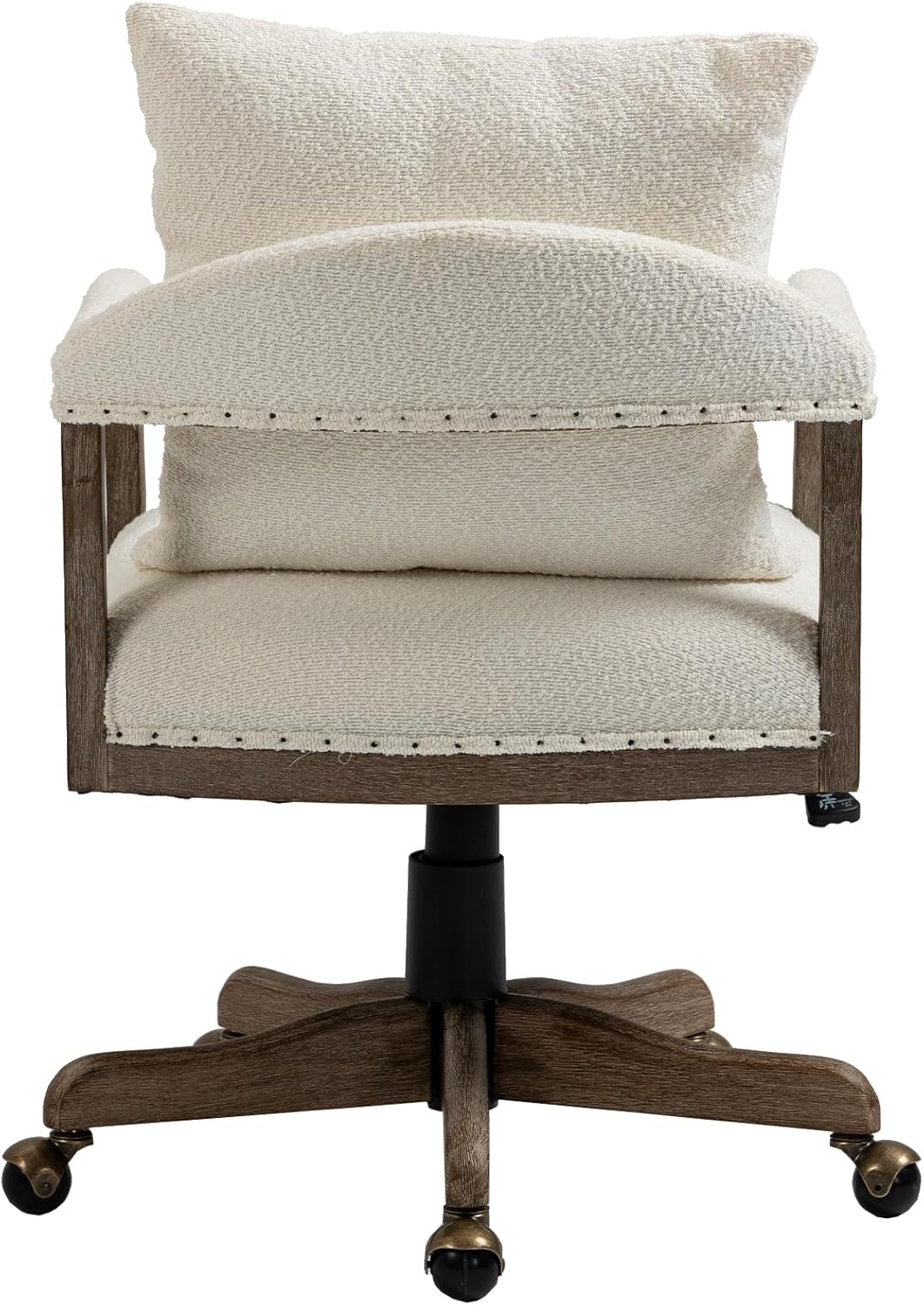 Upholstered Chair Office with Adjustable Seat Height Wheels for Living Room Bedroom Beige Solid Modern Contemporary Fabric Wood Finish Swivel