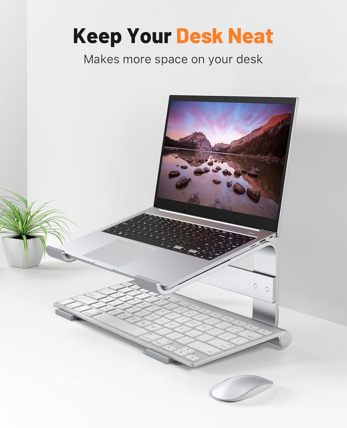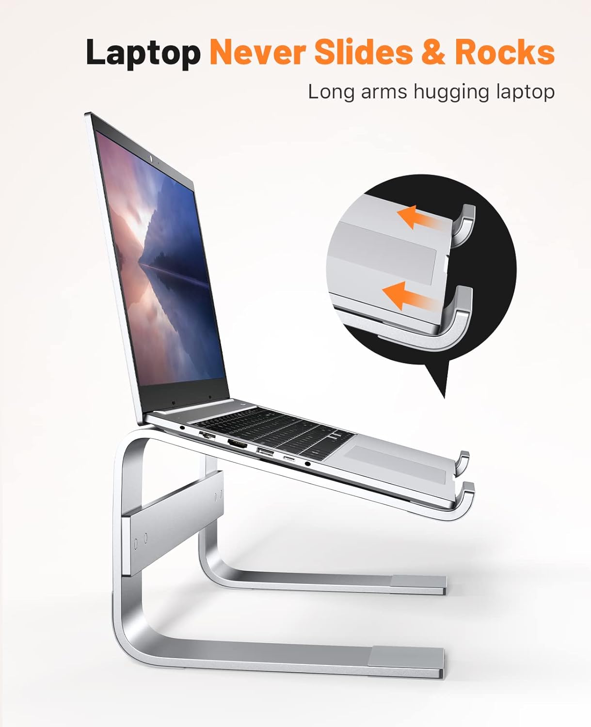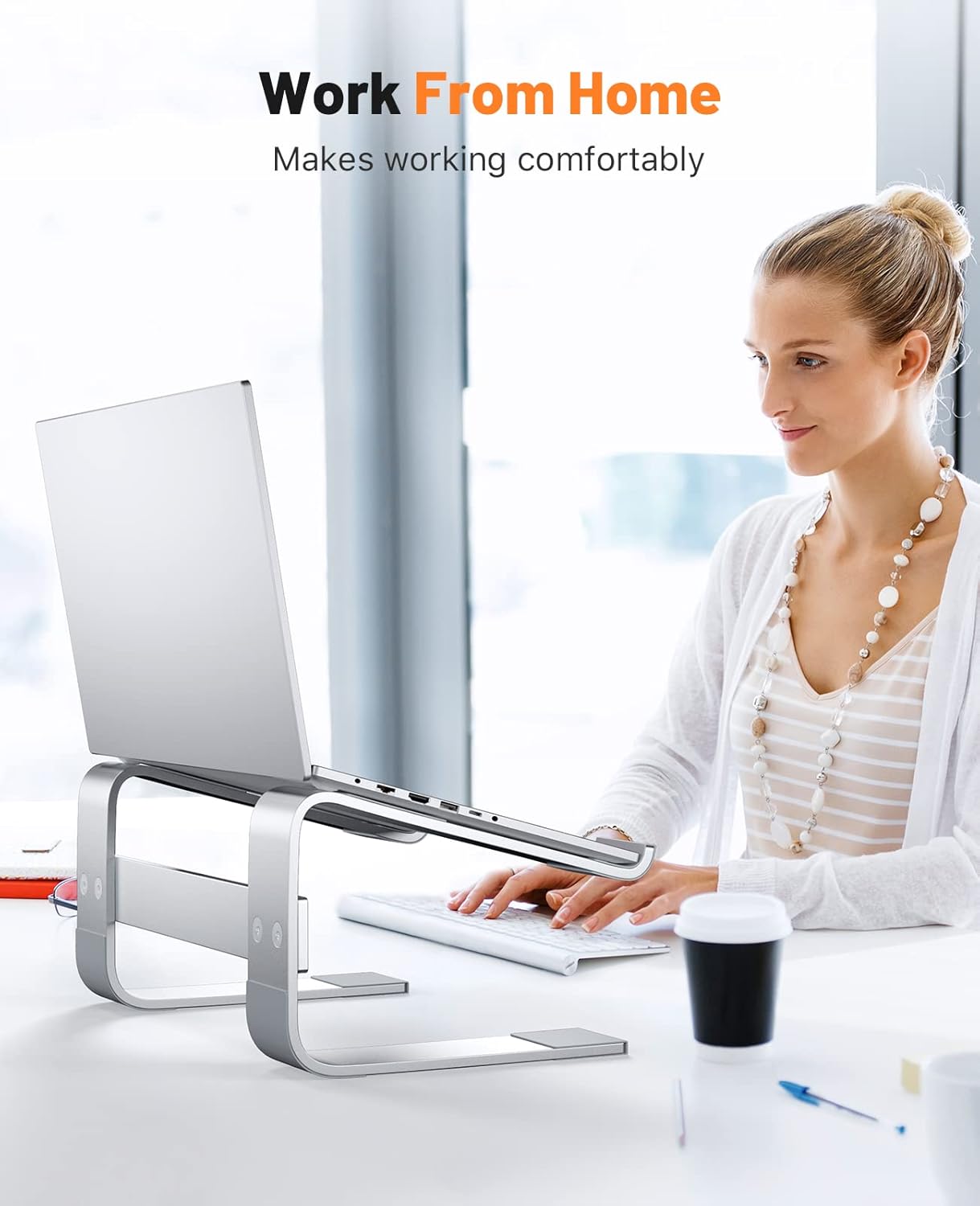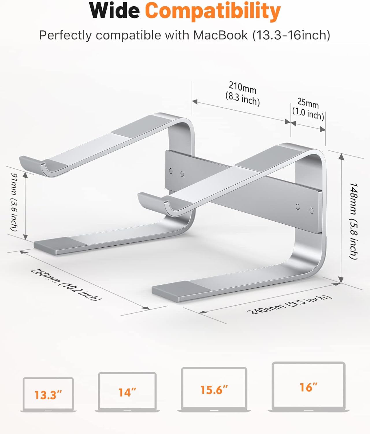 Laptop Stand for Desk, Laptop Riser for Desk, Computer Stand for Ventilated Ergonomic Aluminum, MacBook Stand Compatible with MacBook Pro Air 10 13 15.6 16 16.2Inch Notebook Work from Home Silver