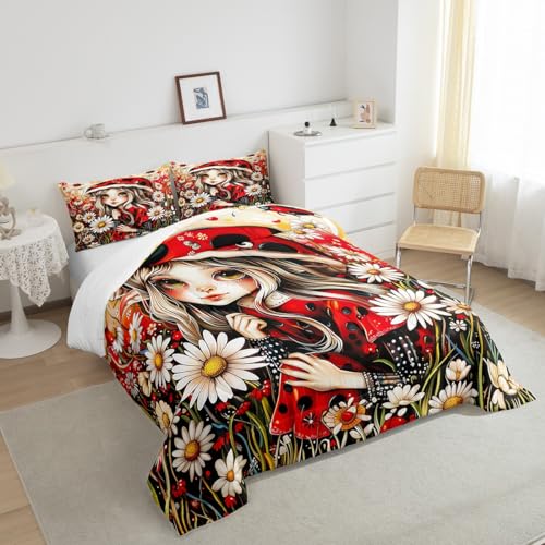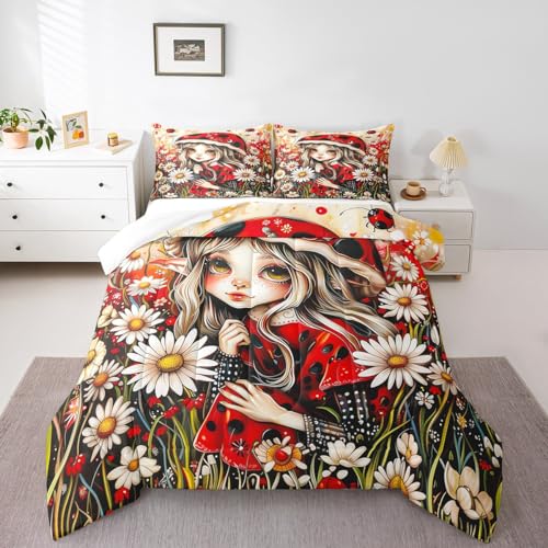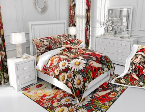 Manfei Girls Women Princess Comforter Set Queen,Blue Castle Dreamy Comforter Set Kids Bedroom Decor,Flowers Garden Princess Bed Set,Fairy Tale Theme Duvet Insert Cute Blanket,Gifts for Girls