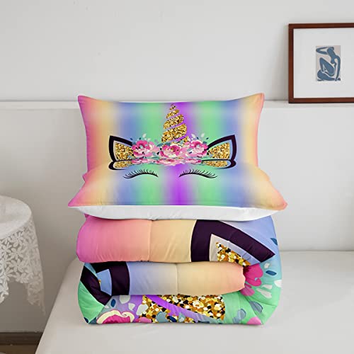 Ombre Rainbow Bedding Sets King Size Golden Stars Comforter Girls Tie Dye Duvet Insert Pink Purple Blue Princess Bedding Colorful Pastel Art Bedding Sets & Collections Sweet Bedroom Decor, Soft Warm