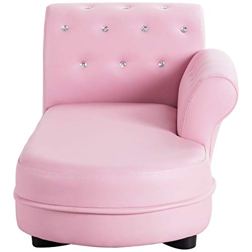 Armrest Relax Chaise Lounge Kids Sofa, Princess Sofa Couch with PVC Leather and Embedded Diamond, Children Bedroom Furniture Set for Girls Gift(Pink)