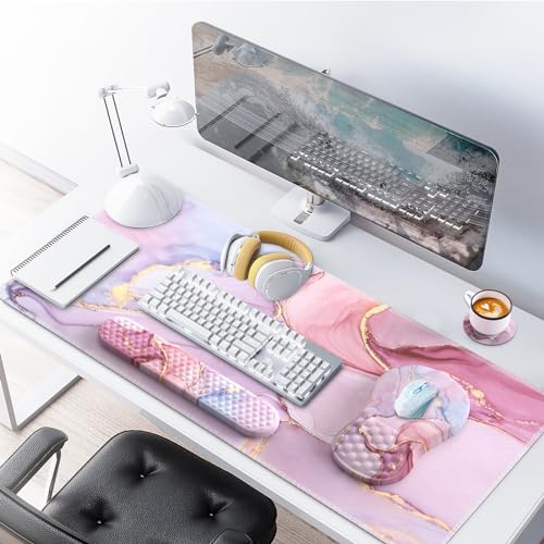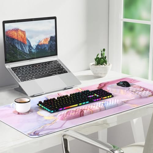 Pink Desk Mat Set, Ergonomic Computer Mats for Desktop, Rose Gold Desk Mat for Keyboard and Mouse, Mouse Pad and Keyboard Wrist Rest, Memory Foam Wrist Rest for Keyboard and Mouse for Office Study