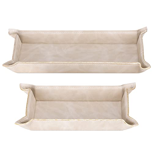 Navaris Faux Leather Tray Set - 2 Valet Organizer Trays, Key Dish, Everyday Catch all Tray for Entryway Table - Store Keys, Change, Wallet, Phone - Valet Remote Tray for Men, Brown
