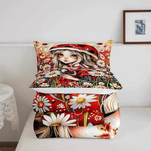 Queen Size Comforter Set with 2 Pillowcases, Princess Dinosaur Animal Cute Dino Soft Bedding Set for Kids and Adults Bedroom Bed Decor