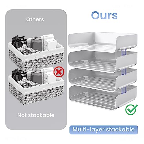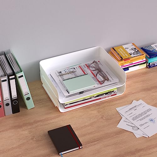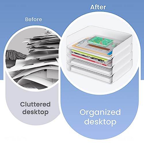 Tomorotec Desk Letter Tray Set, A4 Size Clear PET Stackable Document Organizer Office Desktop File Paper Holder Book Storage Rack Side Load Anti-Skid Stacking Support Convex Bottom (4X Portrait)