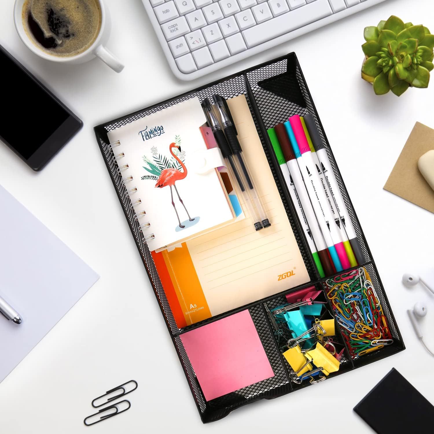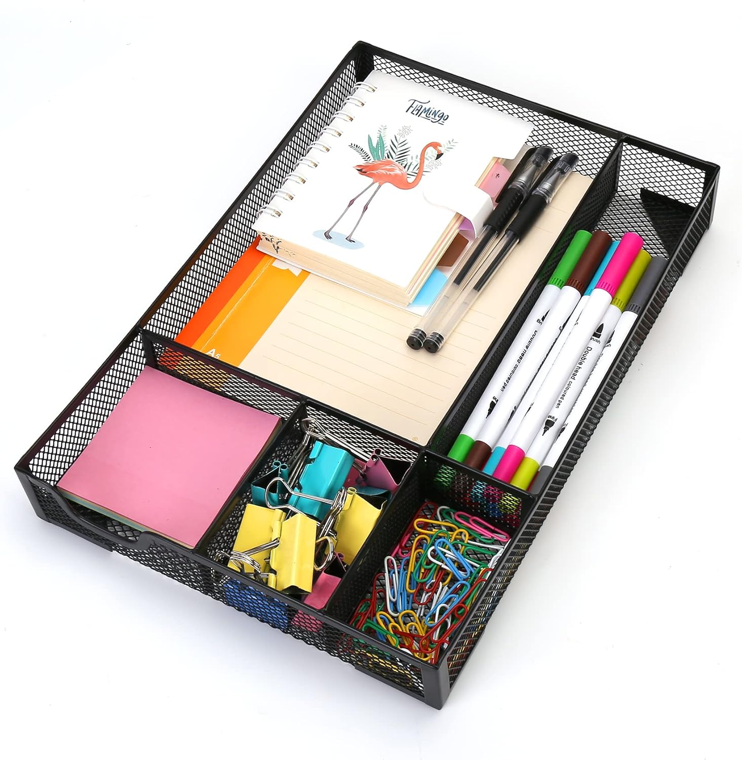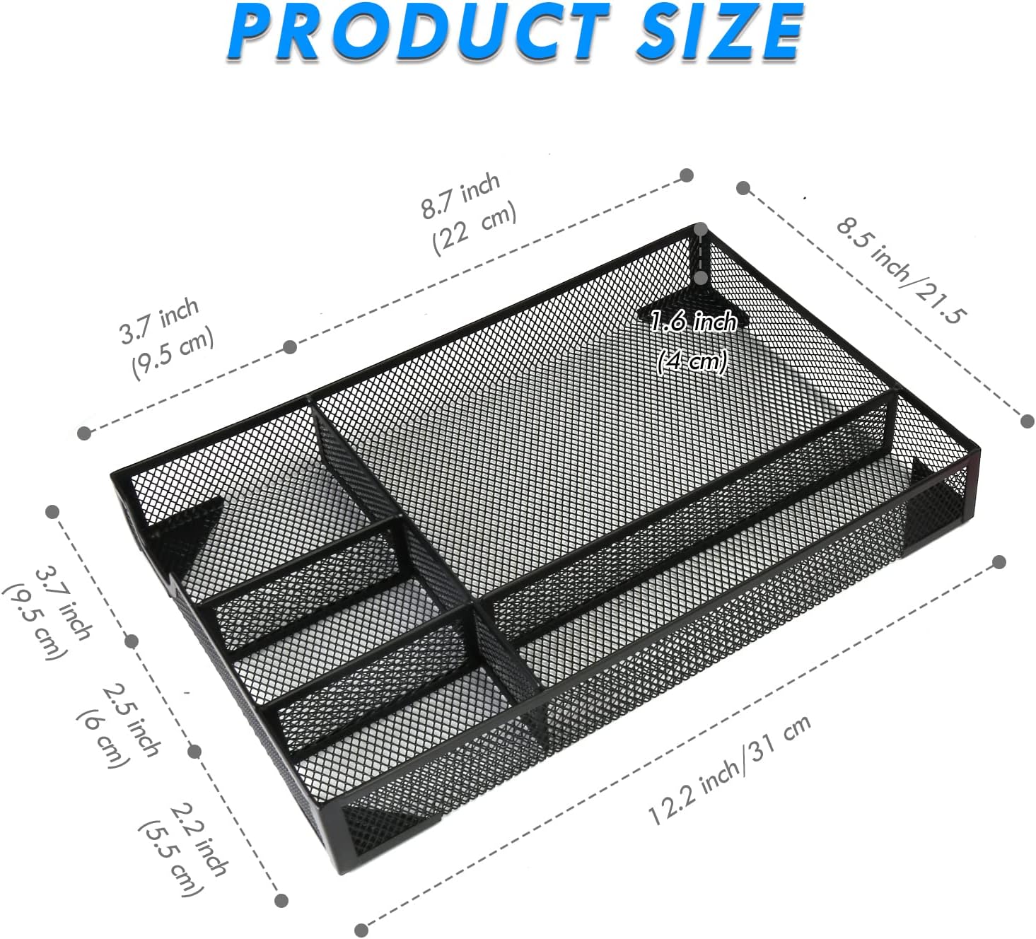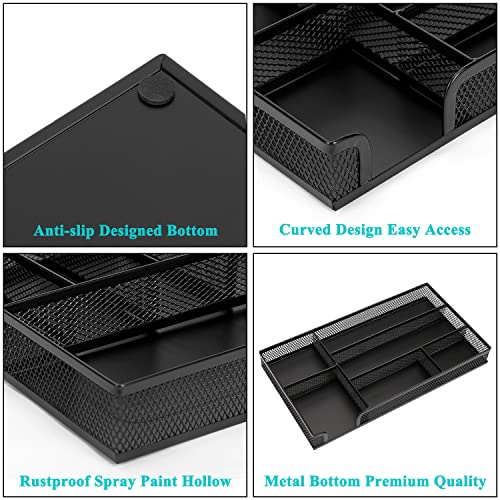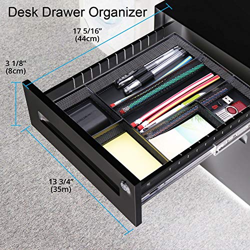 Desk Drawer Organizer,Metal Mesh Drawer, 5 Grid Large Space,Multi-use Desk Organizer Storage Box Set for Office,Home,School Supplies,12.2 x 8.3 x1.8 Inches
