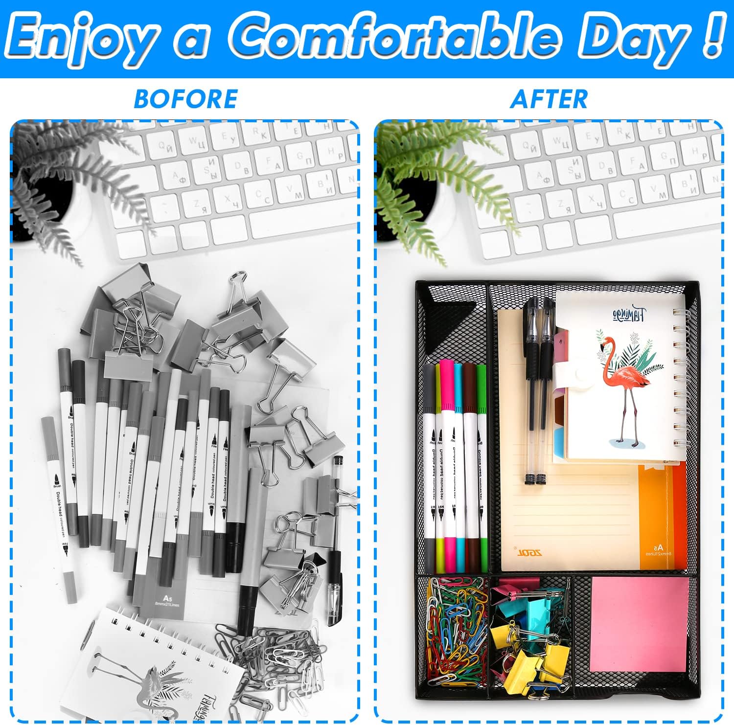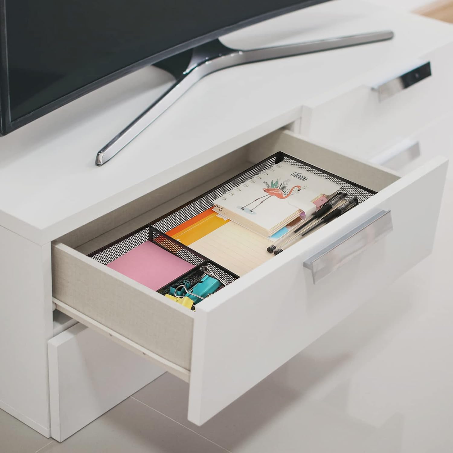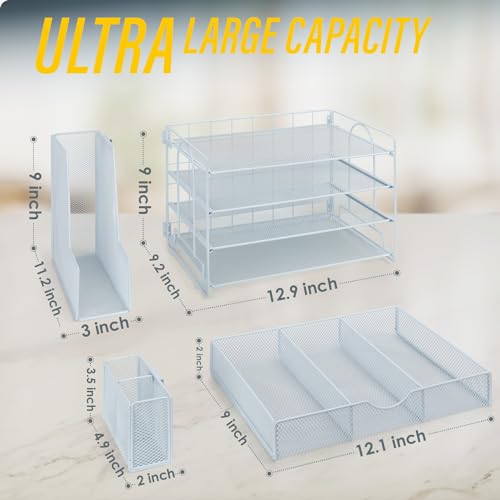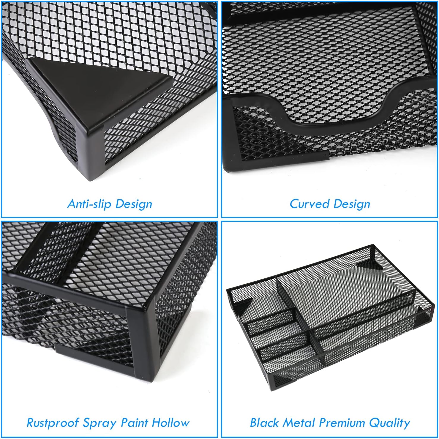 Desk Drawer Organizer, A4 Large Metal Mesh Desk Rrganizer Tray, Versatile Storage Box Set for Office Home Supplies,13 x 9 inches