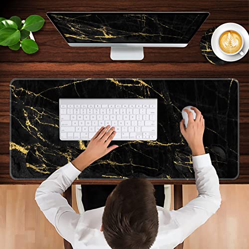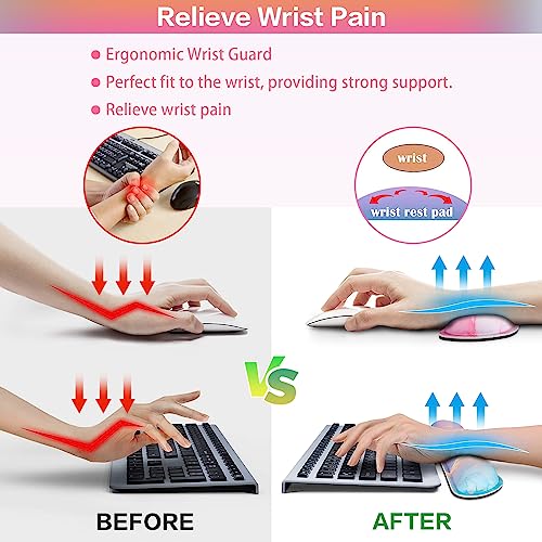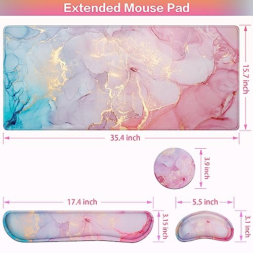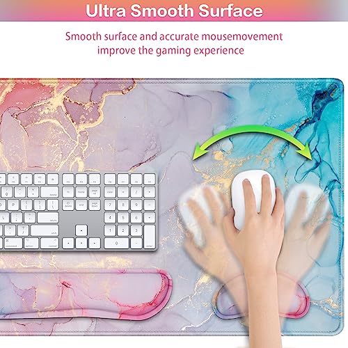 Mouse Pad with Wrist Rest,QOMOLAMA 4-in-1 Large Mousepad+Keyboard Wrist Rest+Mouse Pad Wrist Support+Cup Pad Set,Ergonomic Mouse Pad,Anti-Slip,Memory Foam Desk Mat for Home Office Gaming(35.4×15.7in)