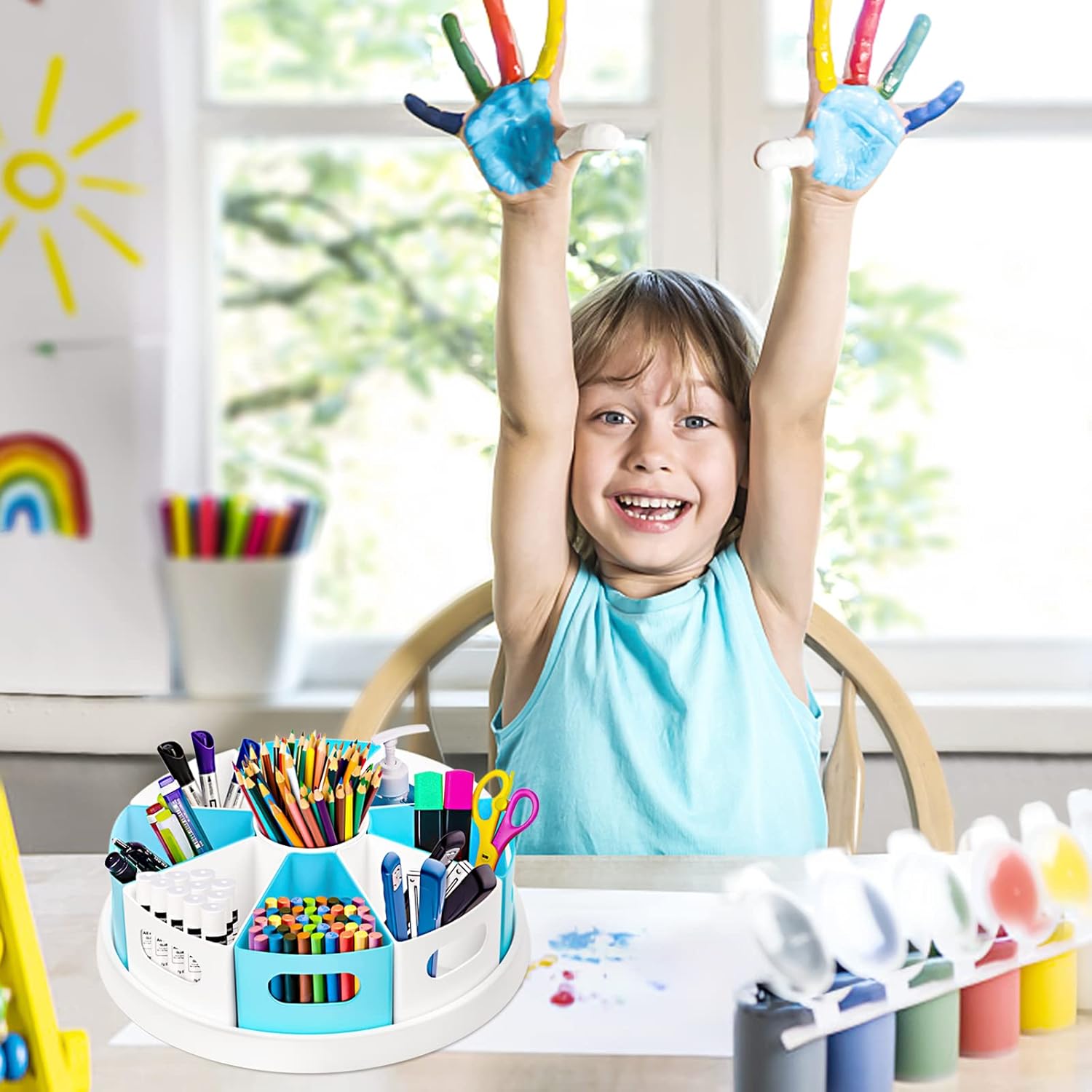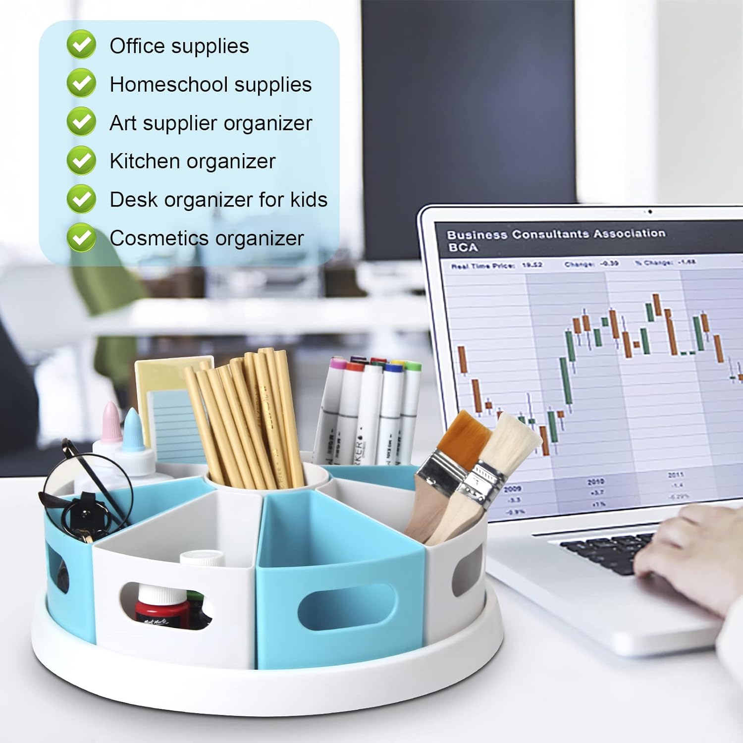 MeCids 360°Rotating Desk Organizers Homeschool Office Organization and Storage Art Supplies Organizers– 12" Lazy Susan Style Caddy with Removable Bins, for Home Offices, School Supplies Classroom Use