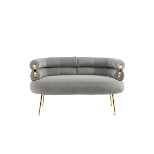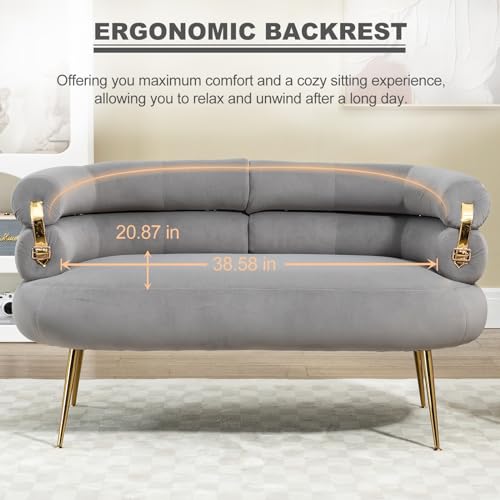 Green Velvet Loveseat, Modern Love Seat Sofa, Upholstered Sofa Chair with Gold Buckle and Leg, Padded Comfy Couch, Small Couches for Small Spaces, Living Room, BedRoom, Waiting Room, Green