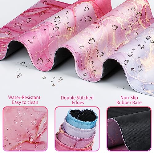 Mouse Pad,Large Pink Desk Mat, 4in1 XXL Mousepad + Keyboard Wrist Rest+Mouse Wrist Rest+Coaster Set with Ergonomic Desk Pad for Home Office Table Computer-Gray Rose Floral