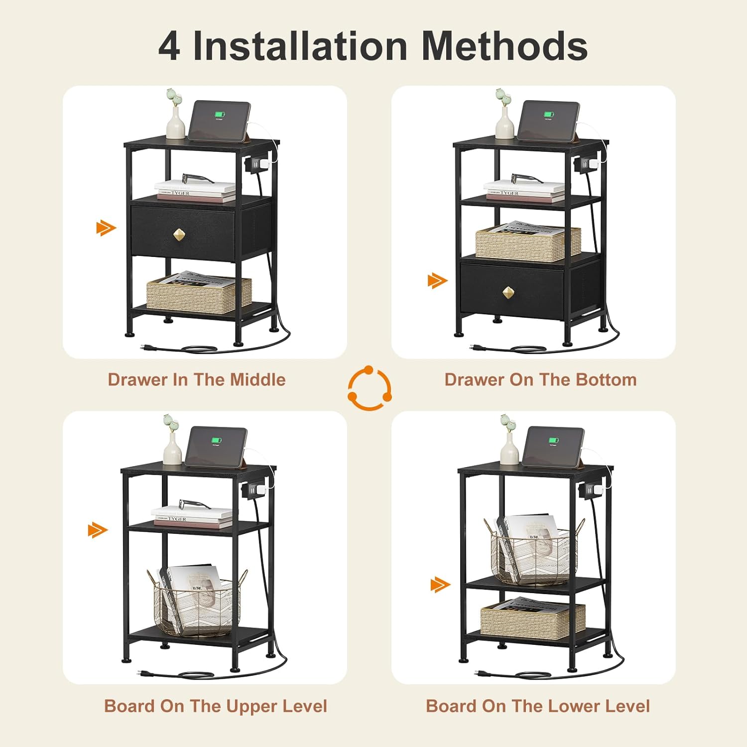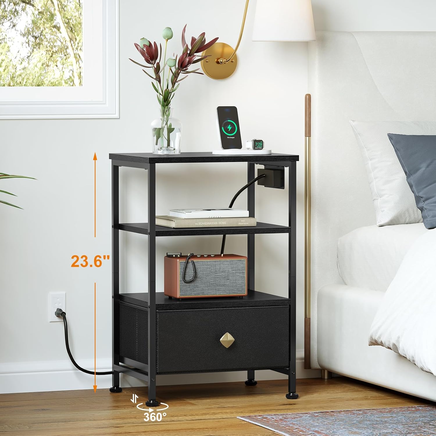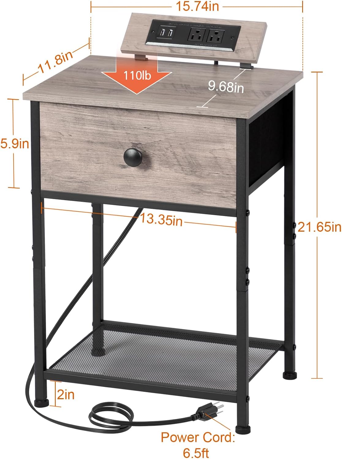 AMHANCIBLE Night Stand Set of 2 with Charging Station