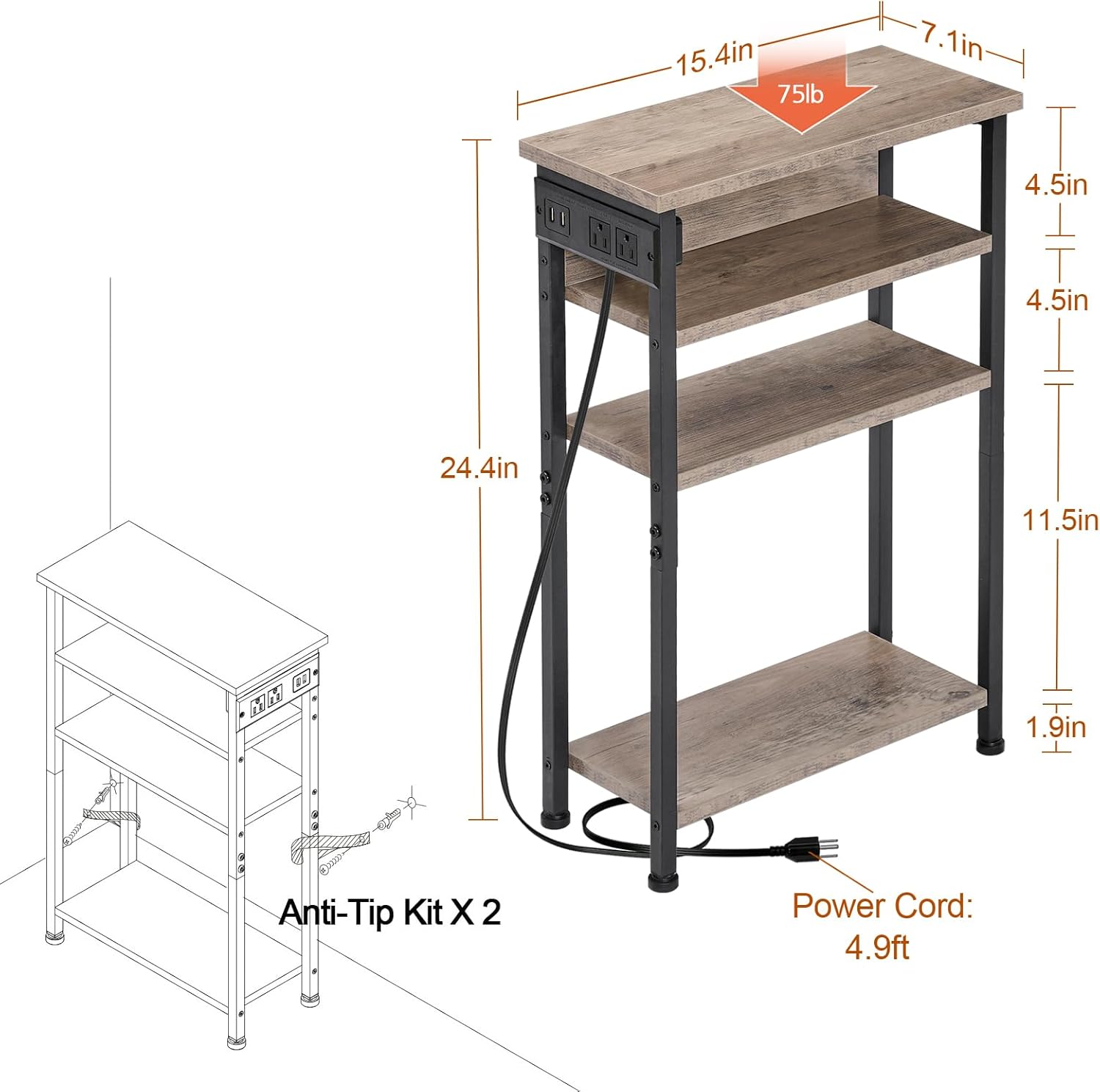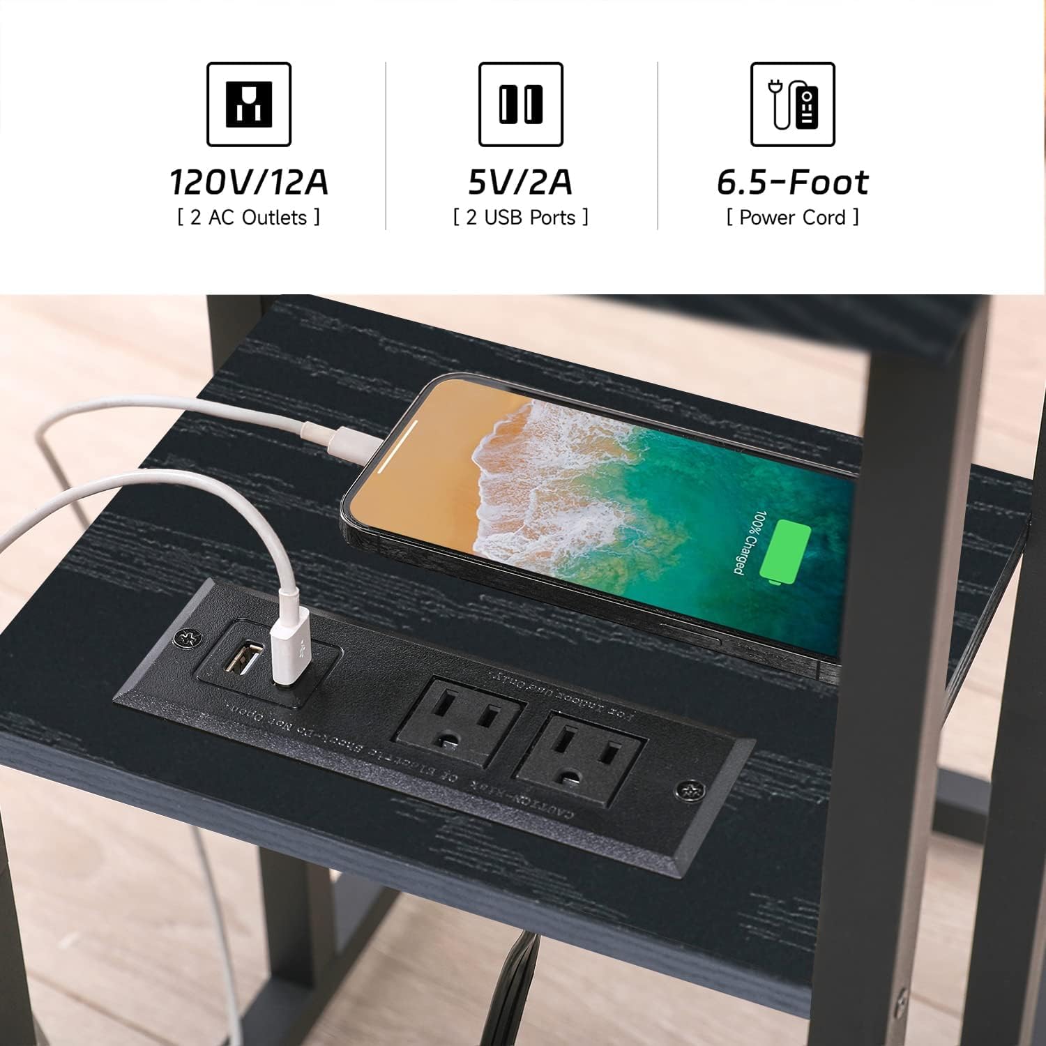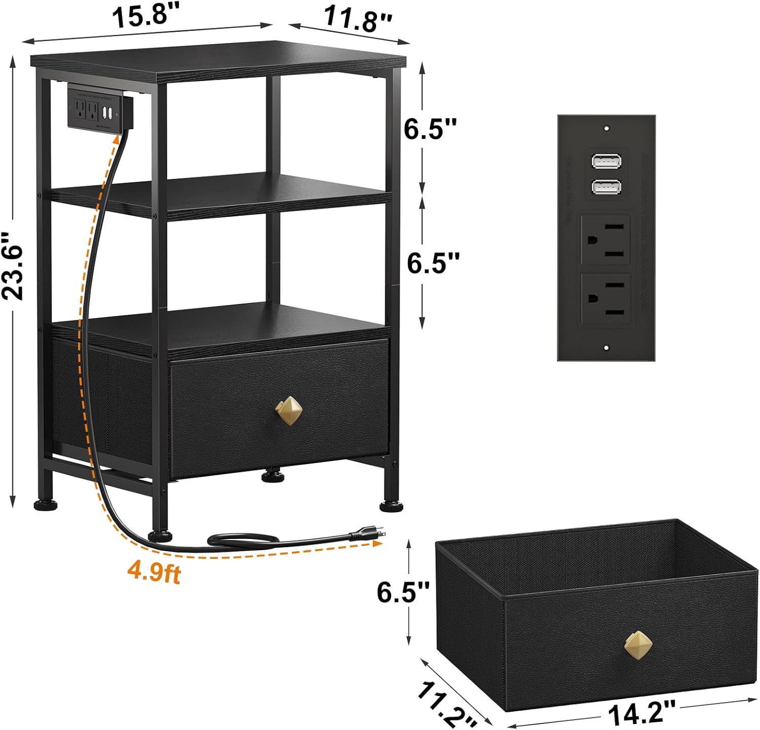 AMHANCIBLE Night Stand Set of 2 with Charging Station