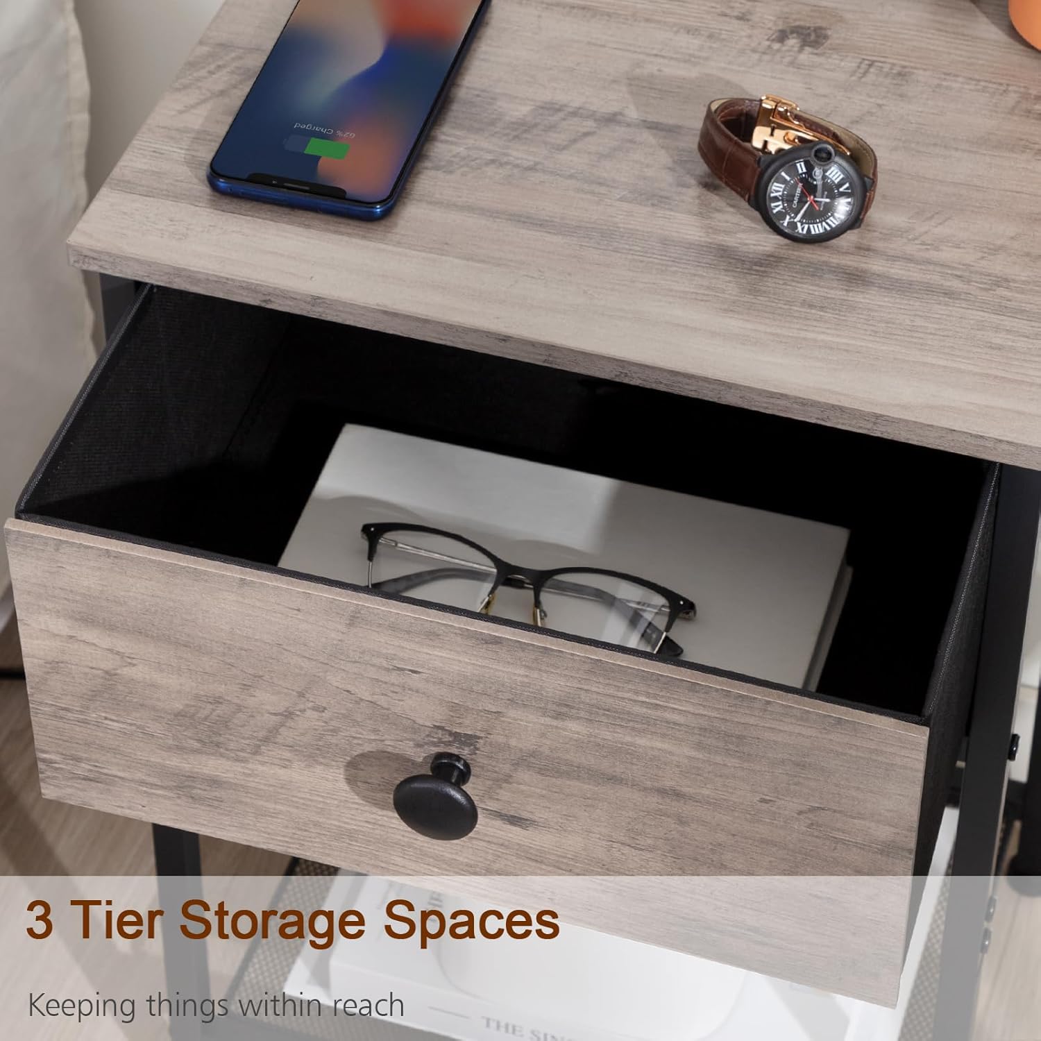REAHOME Nightstand with Charging Station Nightstands Set of 2 with Charging Station and Drawer