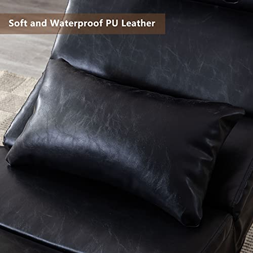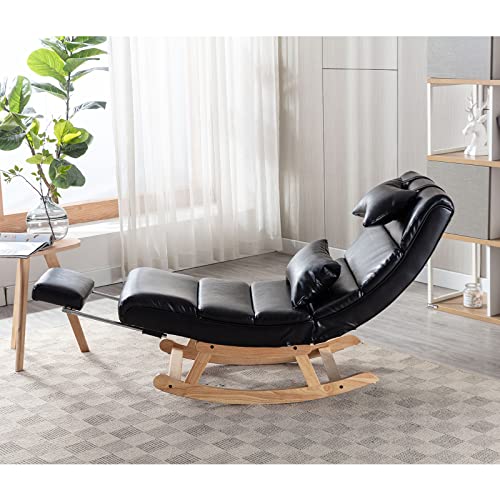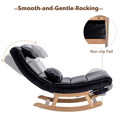 Rocking Chair Nursery, PU Leather Upholstered Rocker Recliner Chair with Pillows & Foot Rest, Armless Lounge Chairs Nursing Glider for Living Room Bedroom Office (PU, Black)