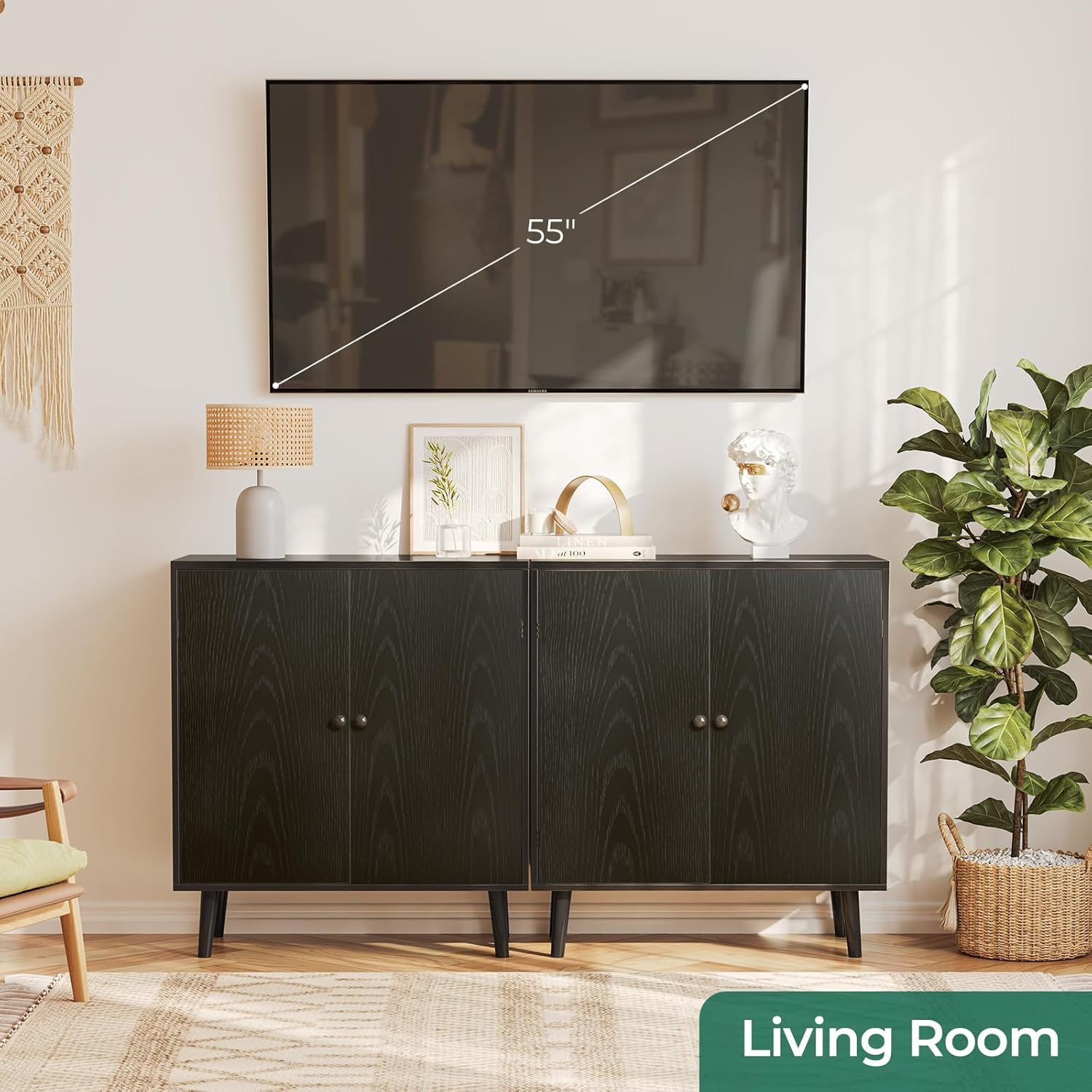TV Stand 43.3"x11.8"x19.7" Solid Wood Teak,Solid Teak Wood TV Stand with Ample Storage Space for Living Room Entertainment Center Living Room Furniture