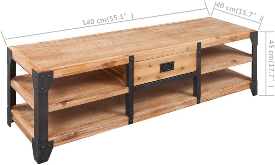 vidaXL Modern Industrial TV Stand - Solid Acacia Wood with Storage Drawer, Durable Steel Legs, Brushed Finish for Living Room