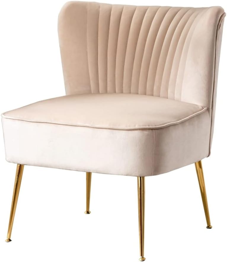 Mid Century Design Lounge Chair Living Room, Accent Chair,Vertical Channel Tufting Iconic Silhouette |Accent Barrel Side Arm Chair |Solid Wood Frame Flared Gold-Finished Metal Legs, Tan Taupe Color