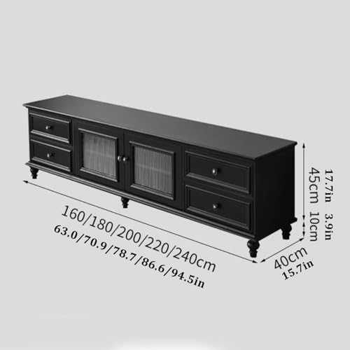Solid Wood TV Cabinet Living Room Storage Cabinet TV Unit TV Stand Cabinet with Storage Space Media Stand Large Storage TV Bench(Black,220x40x55cm)