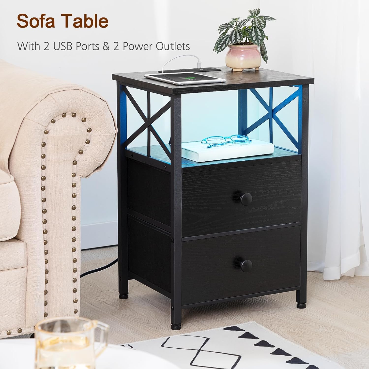 AMHANCIBLE C Table End Tables for Sofa,Nightstands for Bedrooms Set of 2 with Charging Station