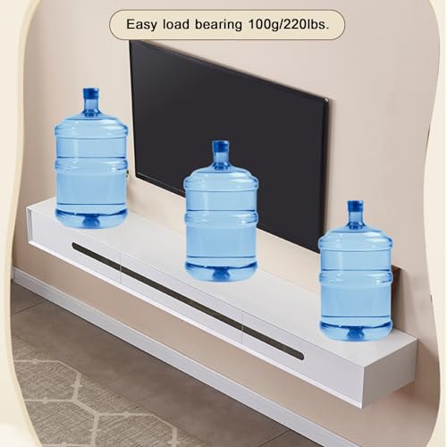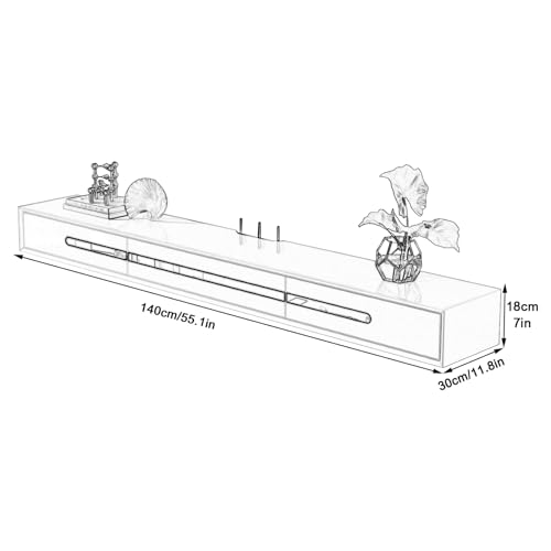 Solid Wood Floating TV Stand Wall Mount, Entertainment Center TV Storage Shelf For Living Room, Wall Mounted TV Cabinet Media Console Unit With 2 Drawers, 140*30*18cm, Easy To Clean ( Color : B , Size