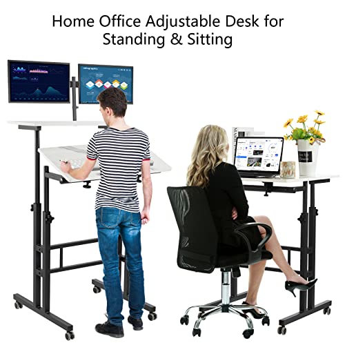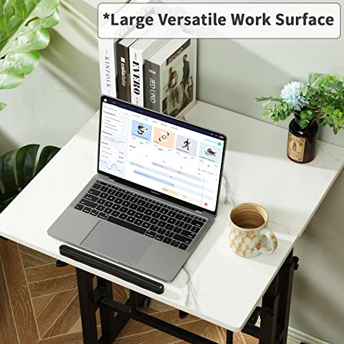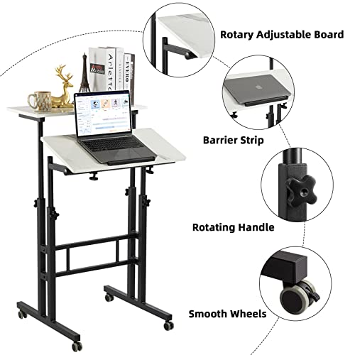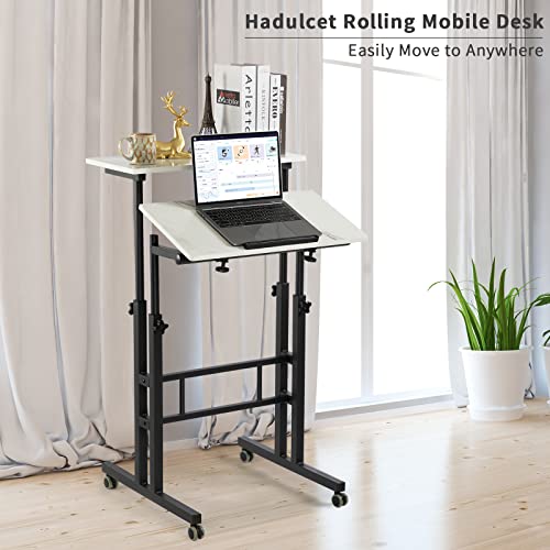 Hadulcet Adjustable Standing Desk, Mobile Standing Desk, Laptop Cart on Wheels, Rolling Computer Cart for Home Office, Rolling Table for Stand Up, Marble White