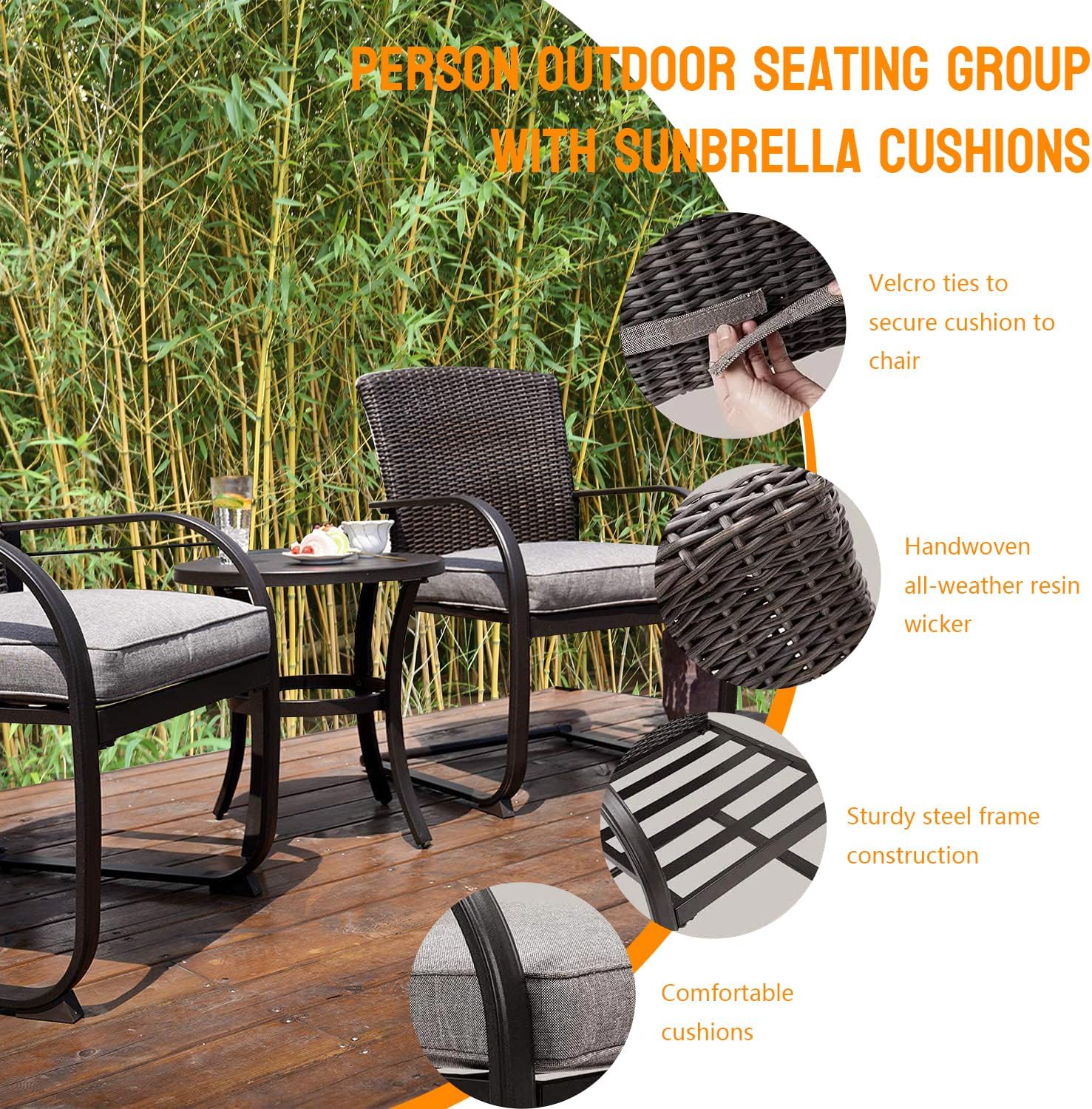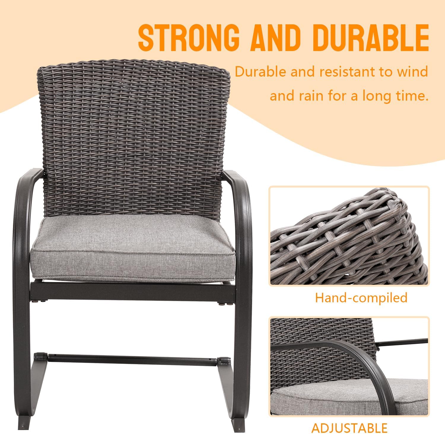 Outdoor Patio Furniture Set Bistro Set of 3,2 Wicker Chairs with Cushion and Coffee Table for Lawn & Garden, Dark Brown